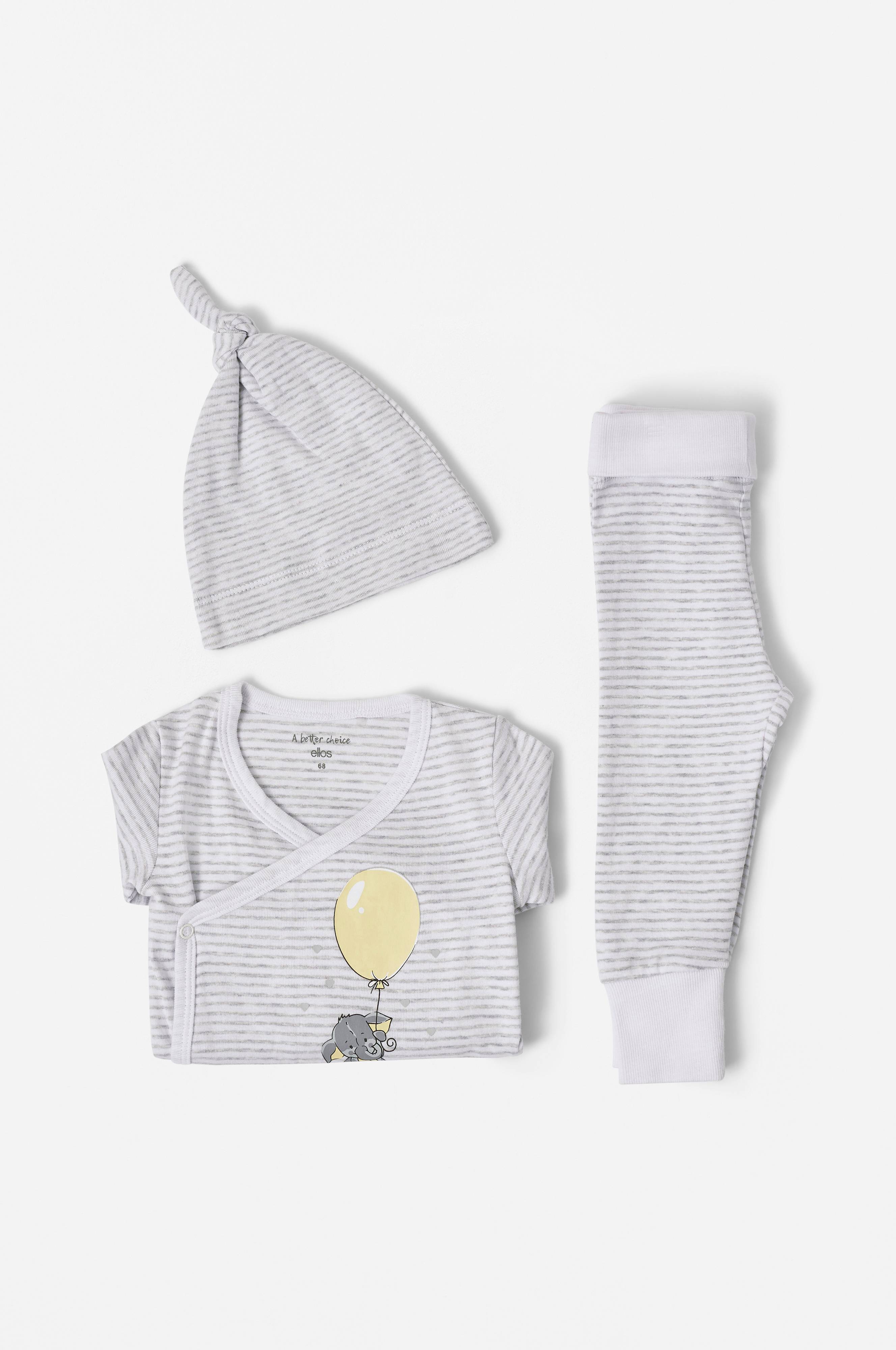 Klespakke til barnets første tid. Alle deler er fremstilt i bomullstrikot.