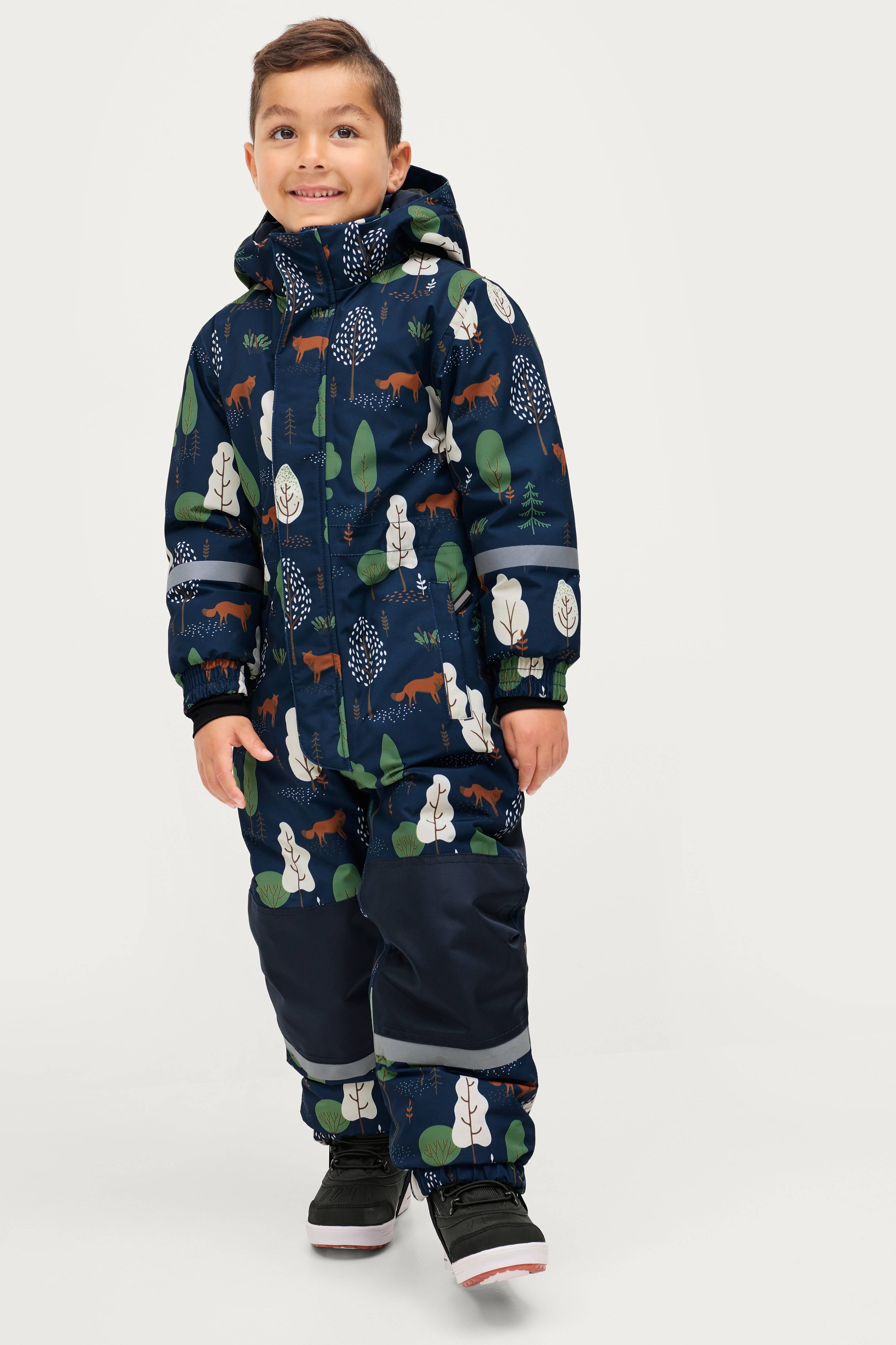 Varmfôret og vanntett dress med stor bevegelsesfrihet. Slitesterkt, vevd ytterstoff med trykt mønster.