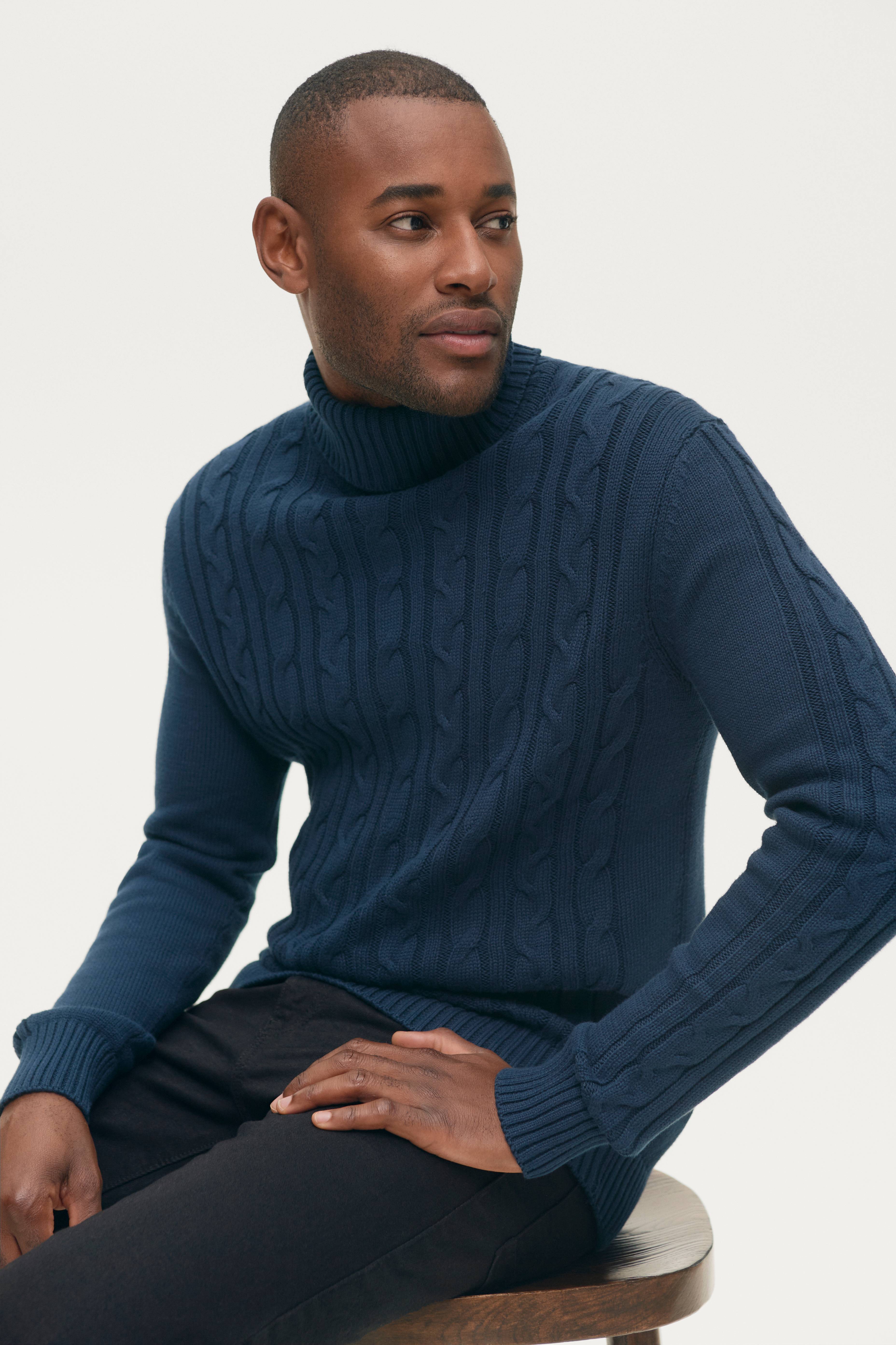 Flettestrikket genser Ridley fra On Our Terms med ribbestrikket polokrage. Vrangbord i erme- og nederkant. Lengde ca. 72 cm i str M.