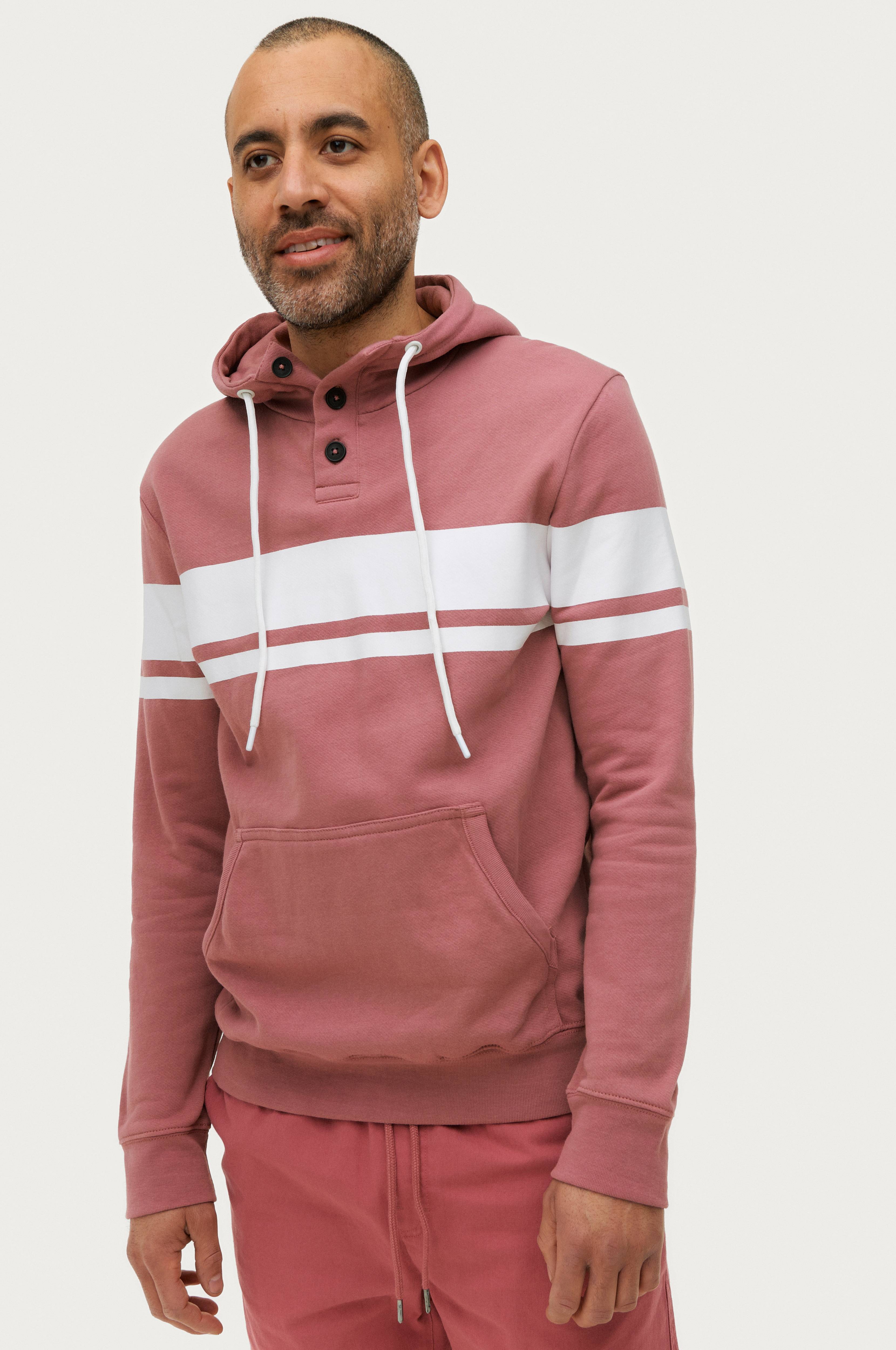 Hettegenser med myk, børstet innside. Hette med snøring og tre knapper foran. Magelomme. Vrangbord i erme- og nederkant. Lengde ca. 75 cm i str M.