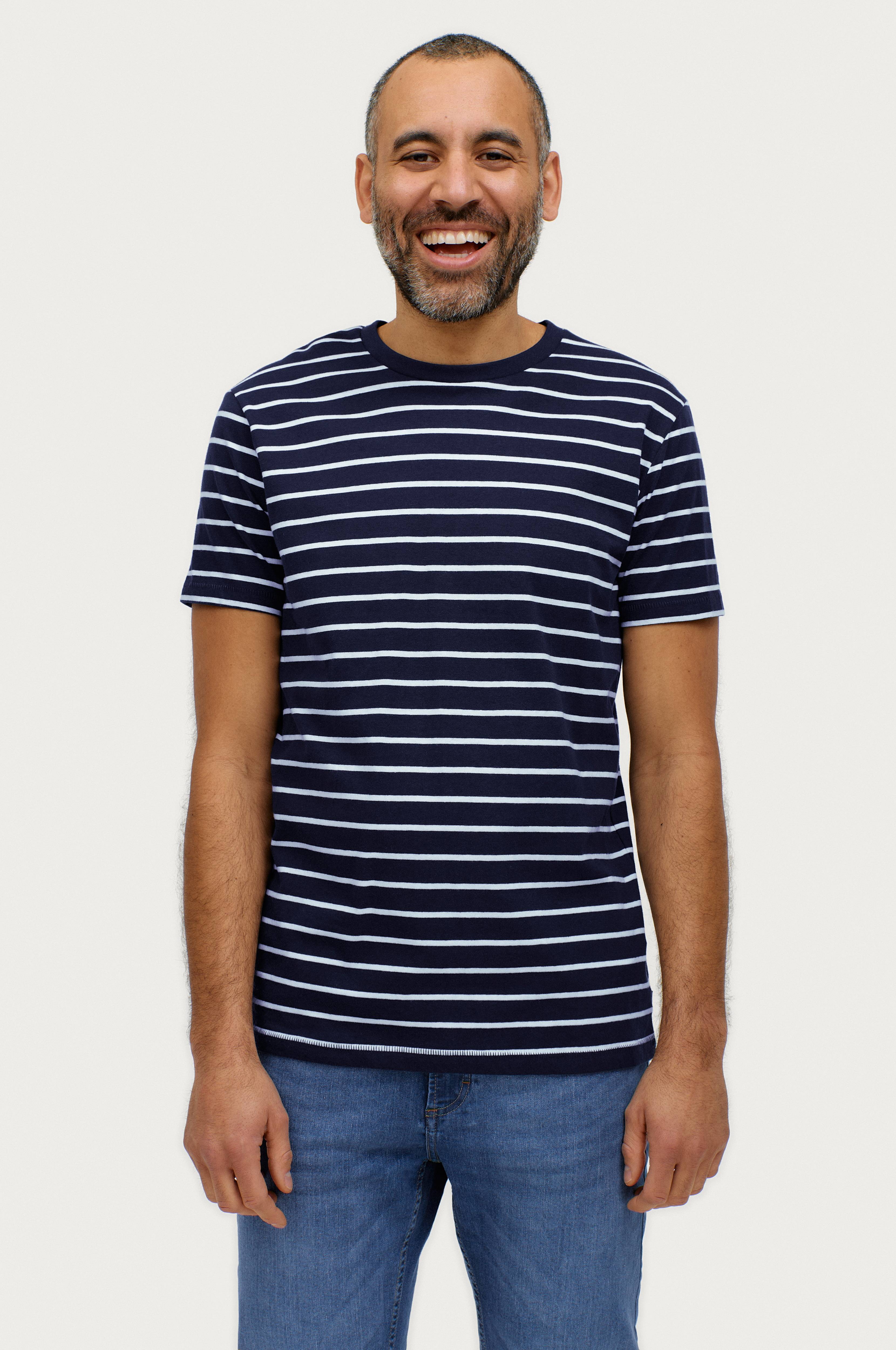 • Stripete t-skjorte • Rund halsringning • Normal passform • Lengde: 74 cm i størrelse M • Ellos samarbeider med Better Cotton for å forbedre den globale bomullsdyrkingen. Better Cotton er en global ideell organisasjon som utdanner bomullsbønder innen metoder for mer bærekraftig bomullsdyrking, og jobber for mer effektiv bruk av vann og redusert bruk av sprøytemidler. Better Cotton gir forbedrede sosiale, økonomiske og miljømessige forhold for bomullsbønder. Ved å velge våre bomullsprodukter støtter du vår investering i Better Cottons misjon. Better Cotton kommer fra et system med massebalanse, og er ikke fysisk sporbar til sluttproduktet. Les mer om Better Cotton på bettercotton.org/learnmore.