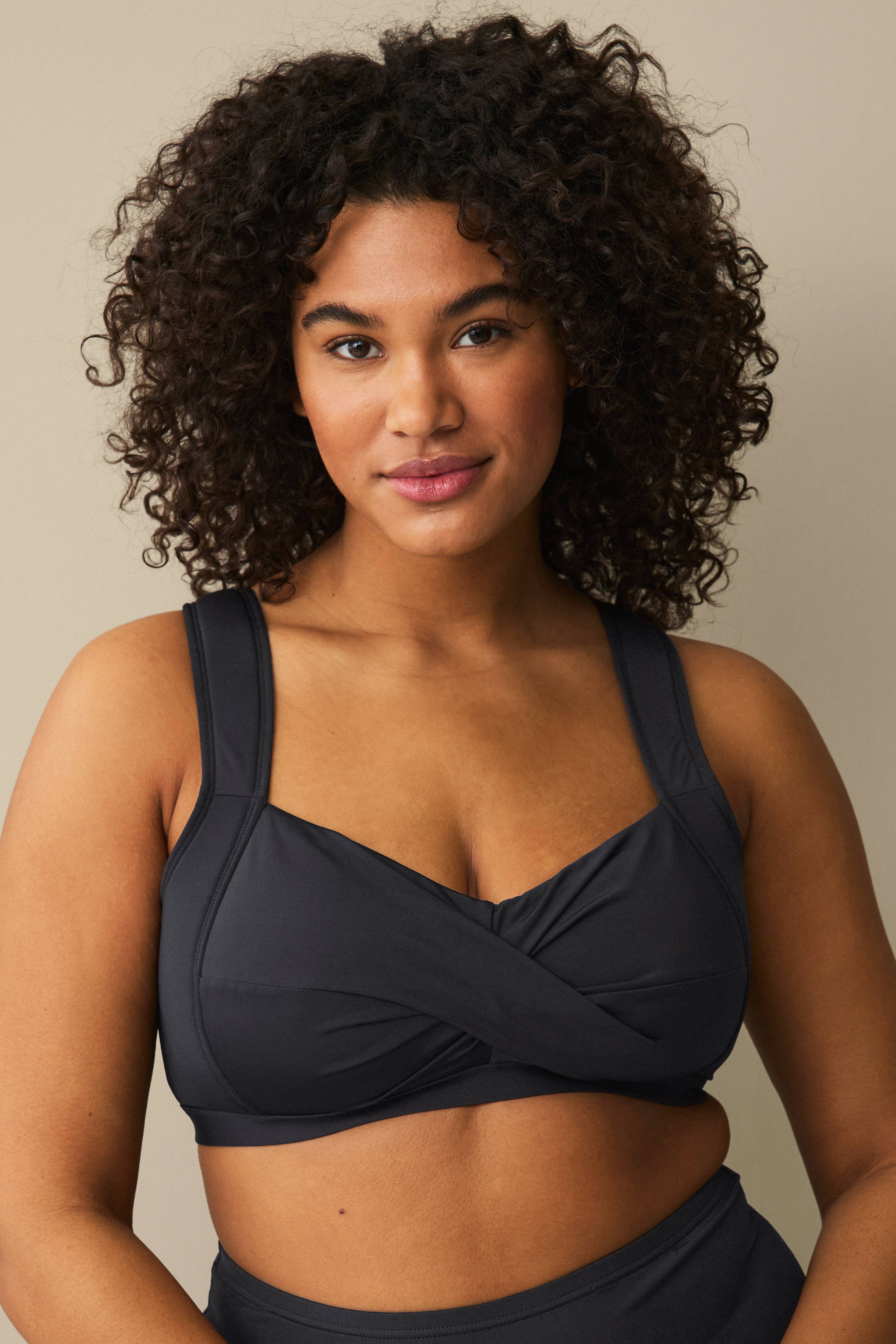 • Fullt foret, ikke polstret bikini-BH med omslagsdesign foran og justerbar, bred skulderstropp• Brakett i sidene• Gummistrikk i nedre kant• Lukning i ryggen med sølvfarget spenne• Plusstørrelser