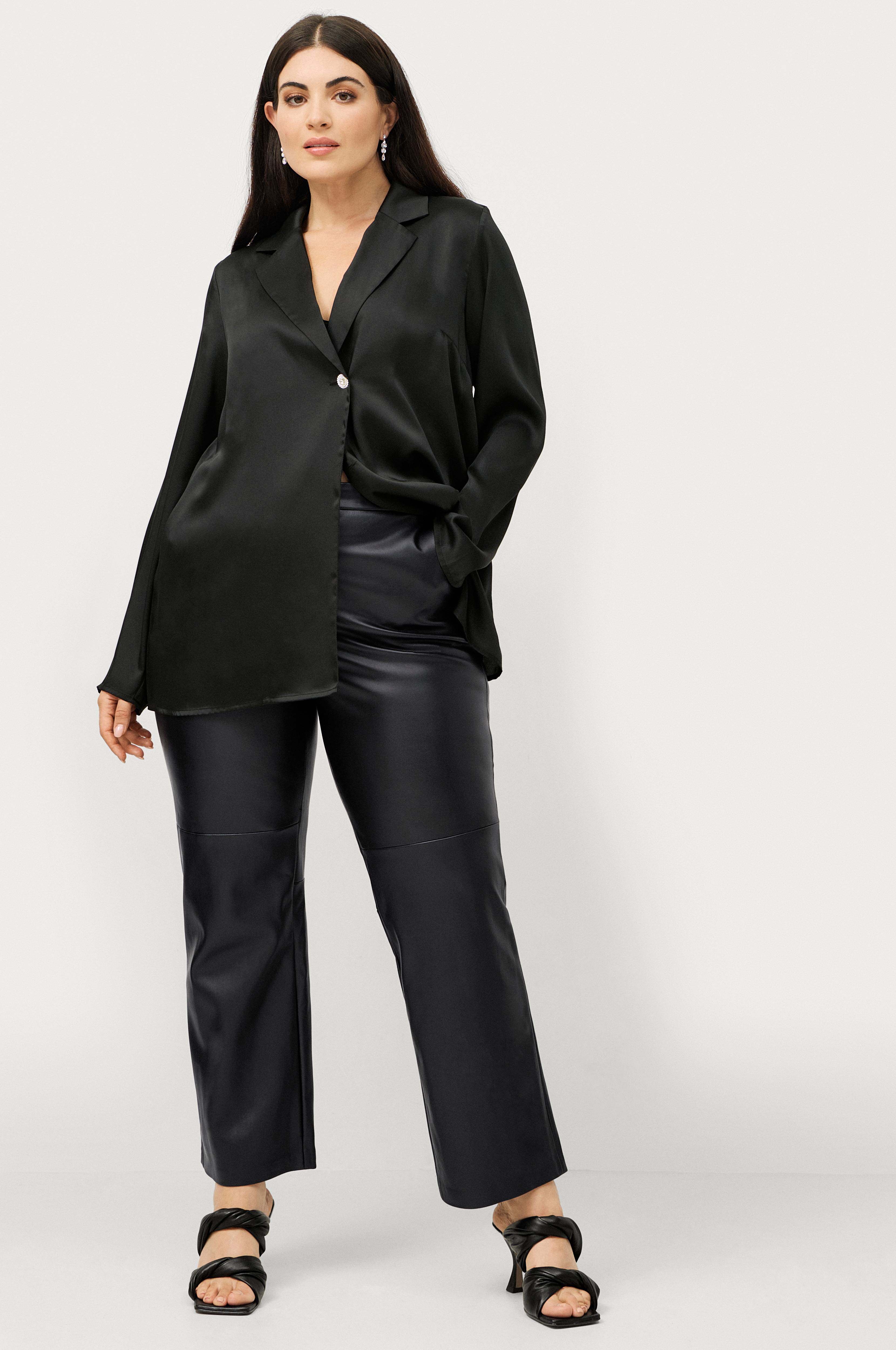 • Krage med jakkeslag• Knapp med strass foran• Lange ermer• Laget av sateng• Lengde: 77 cm i størrelse 42/44