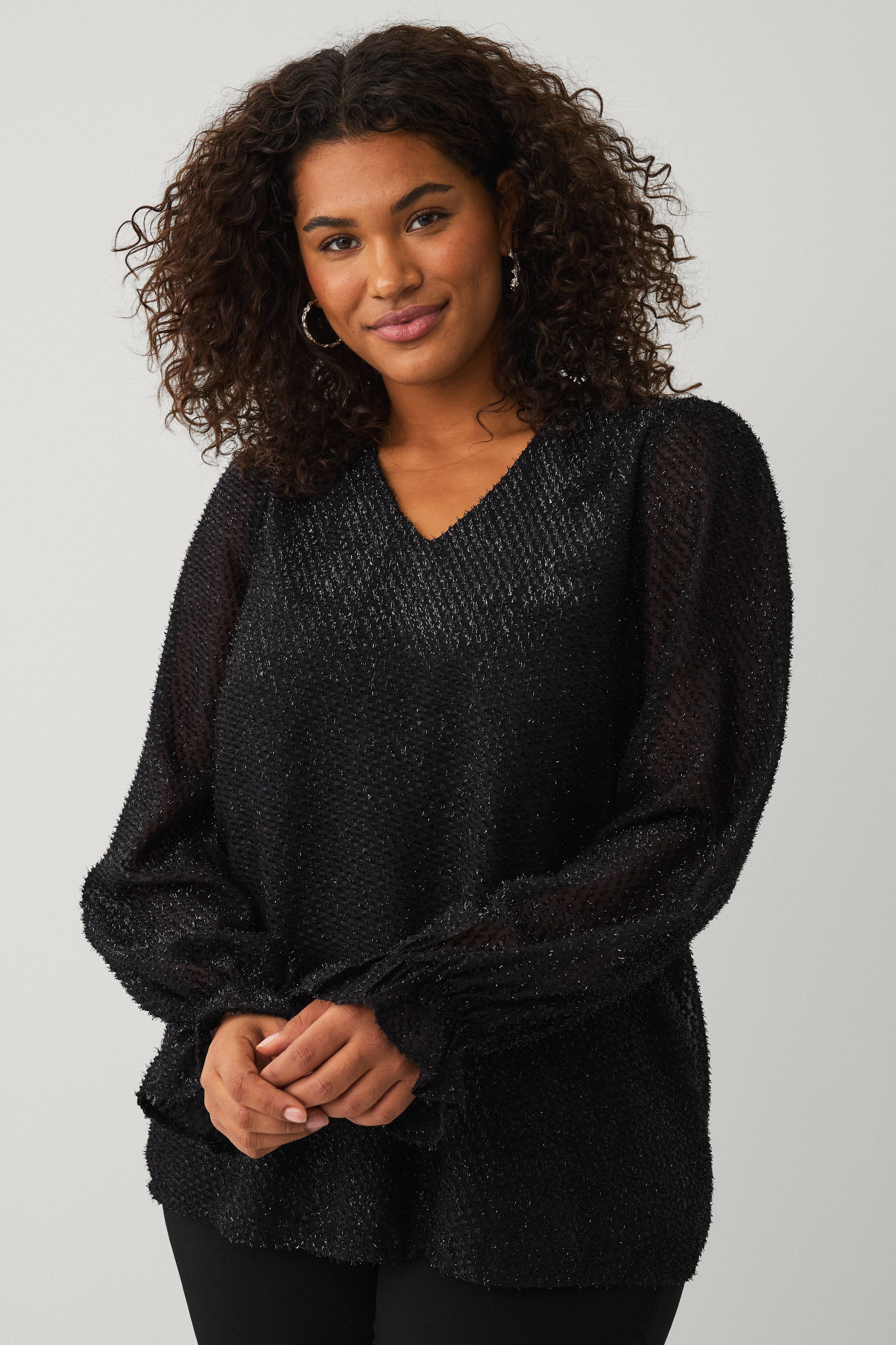 • Fôret bluse med glitrende frynsedetaljer overalt
