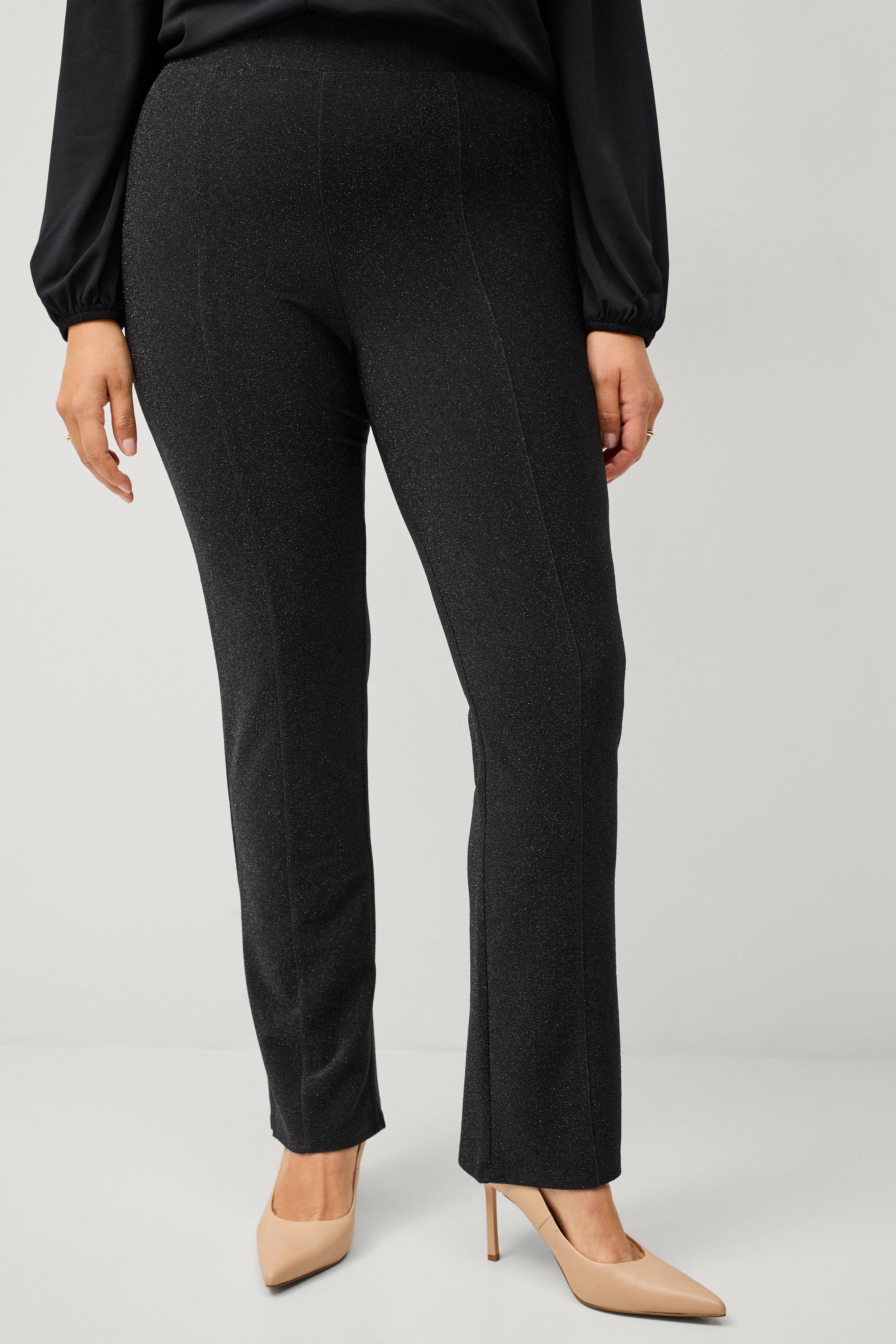 • Glitrende modell i jerseystoff • Rette bein med sydd press foran • Elastiskt linning • Kort skjær på utsiden av benene • Indre benlengde: 81 cm i størrelse L