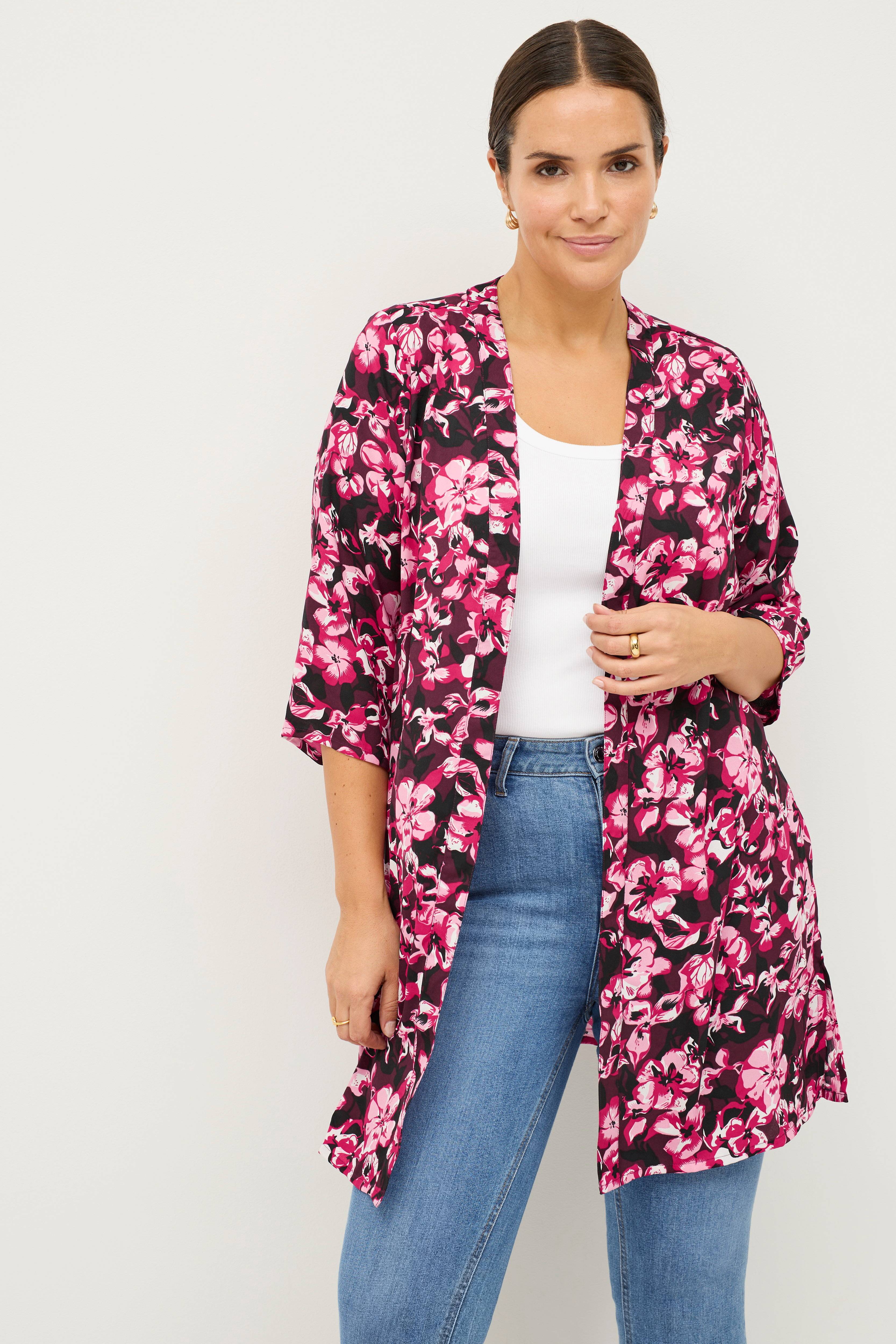 • Åpen, blomstret modell• Armer 3/4 lang• Splitt i sidene• Lengde: 92 cm i størrelse 46