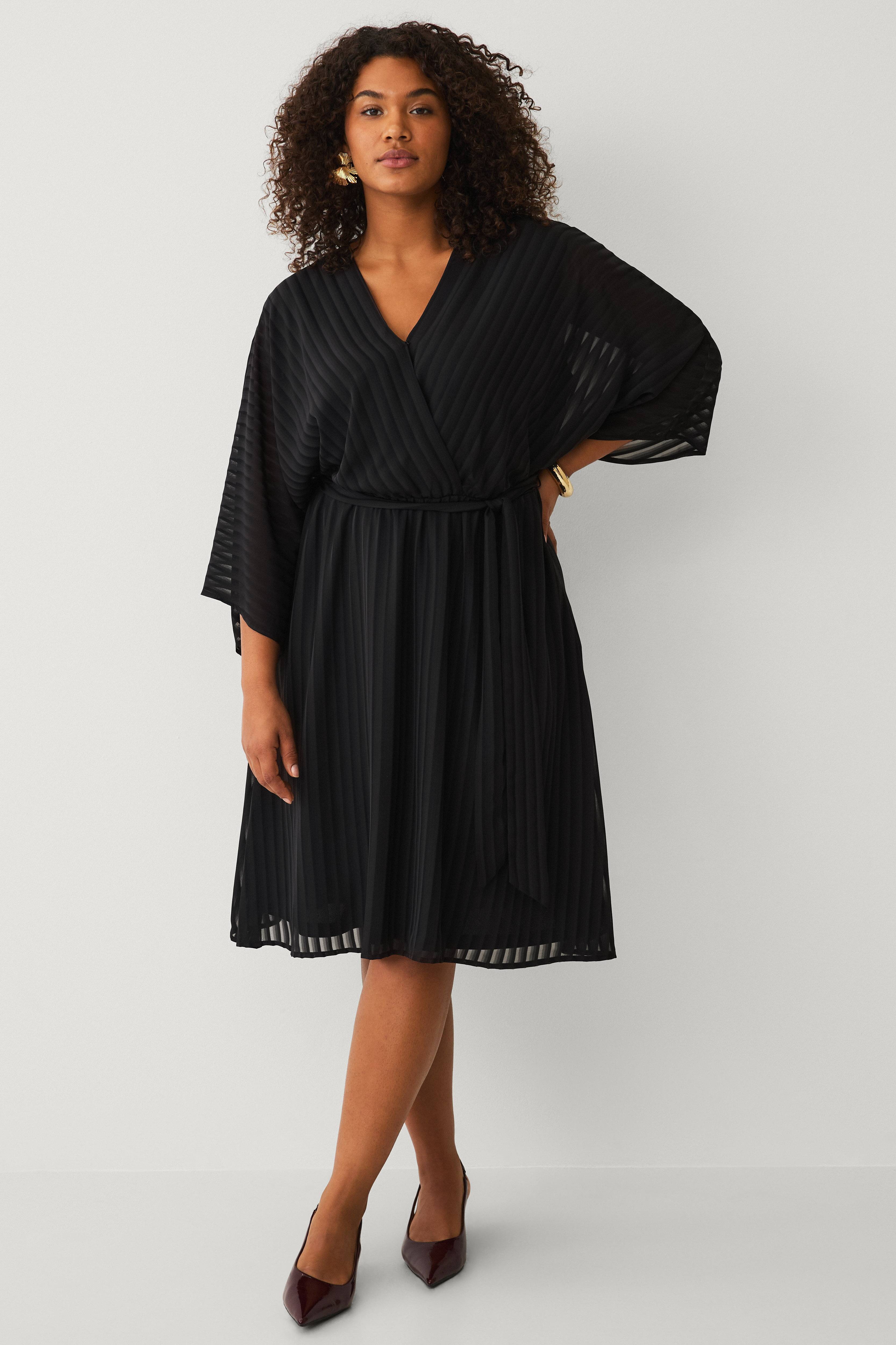 En vakkert sydd kjole, hvor delvis gjennomsiktighet i ermene og skjørtet gir letthet. Ermene og skjørtet er perfekt lengde hvis man ikke ønsker å vise armer ell…