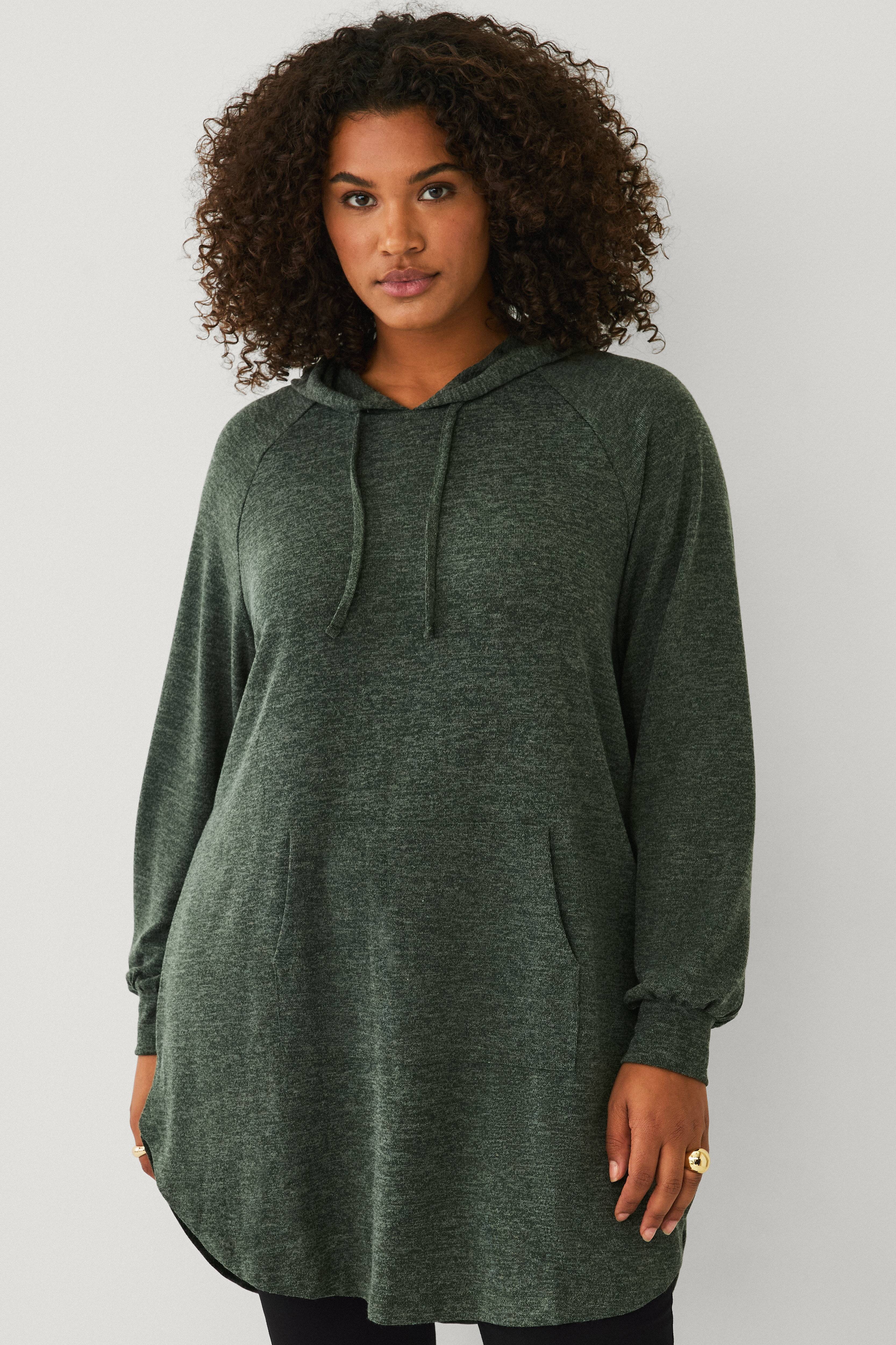 • Lang, finstrikket hettegenser