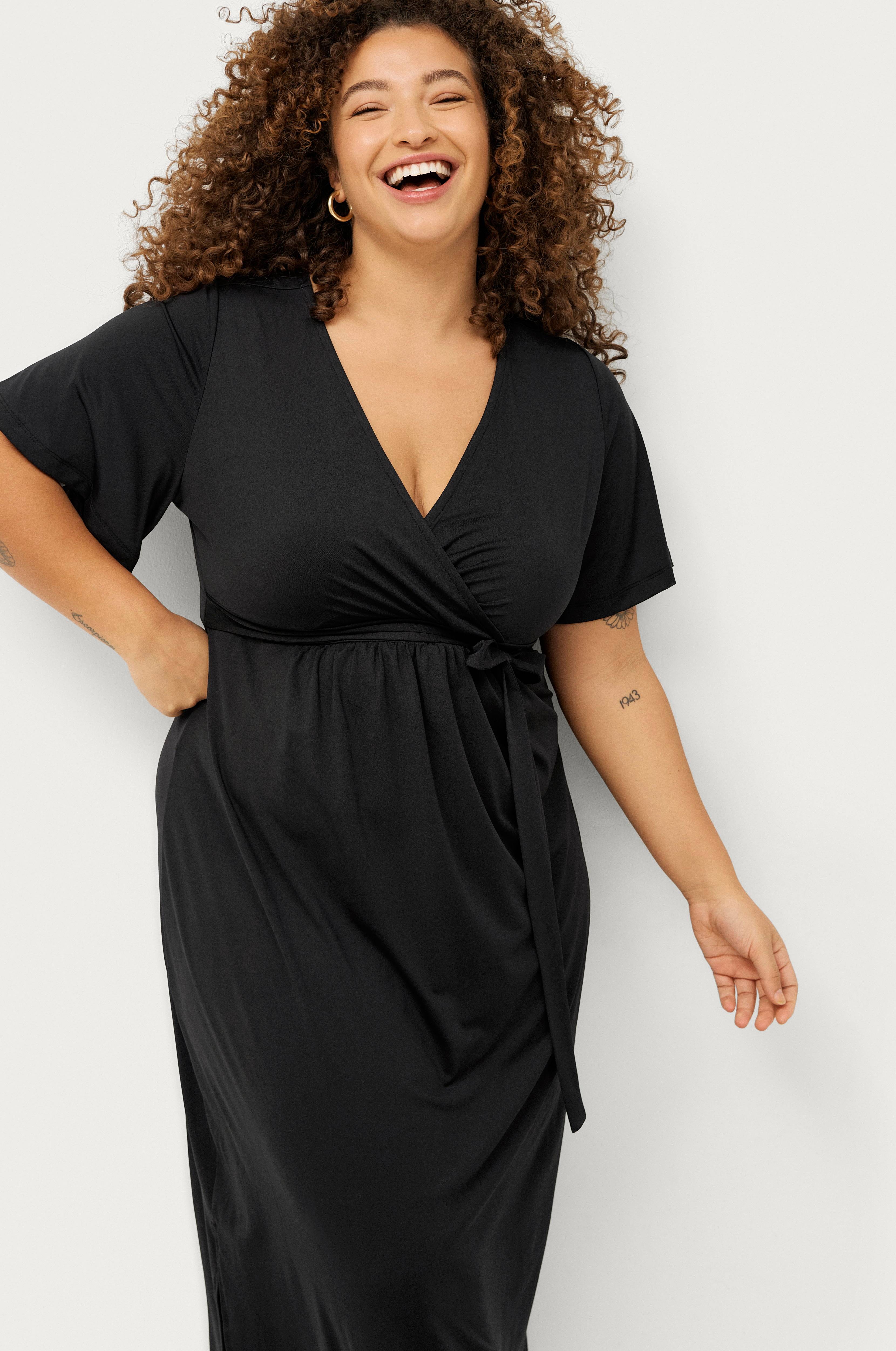 • Lang, lett figurformet modell med korte, brede ermer