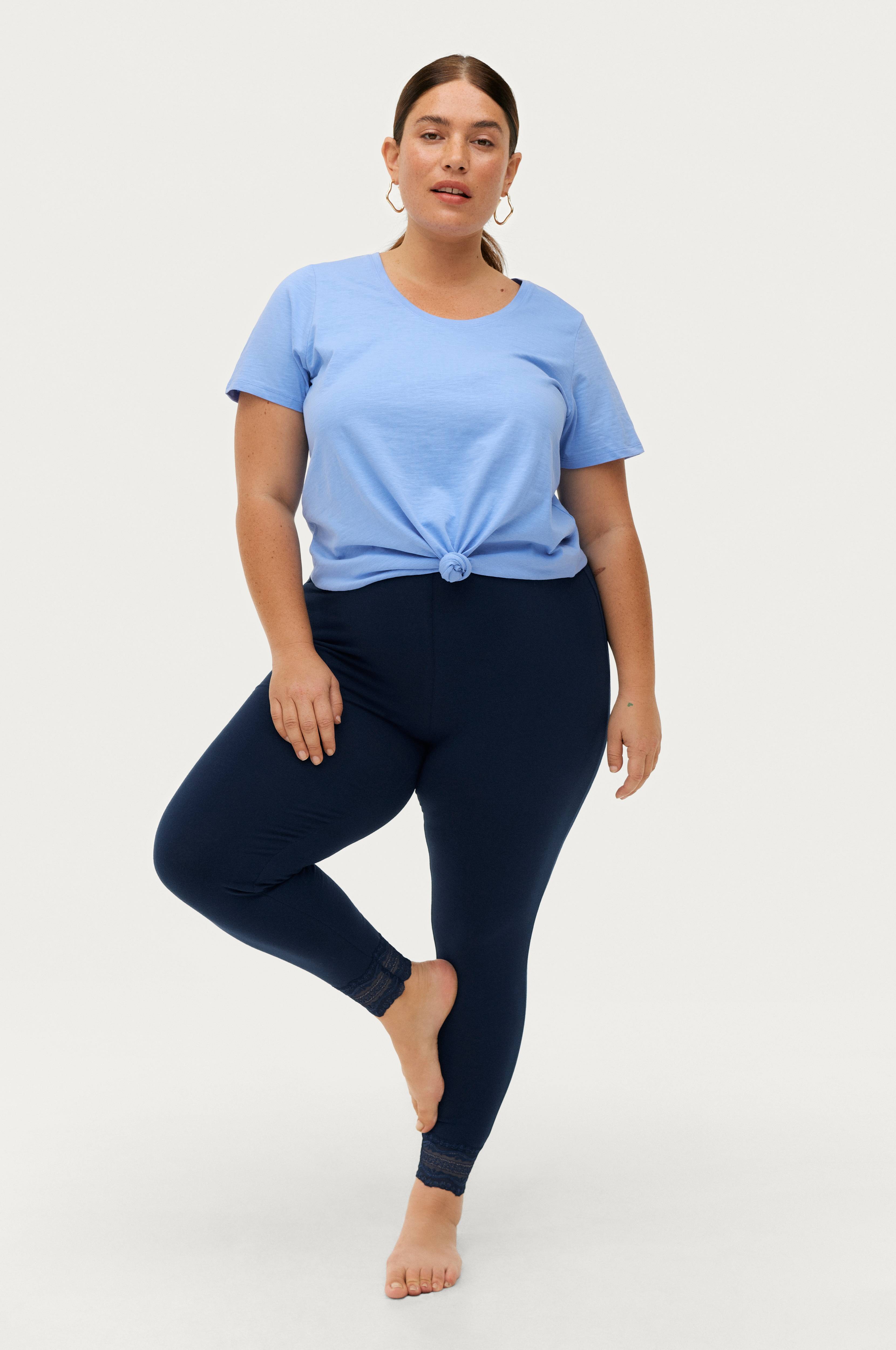 • Ankellange leggings med blonder i enden av benet