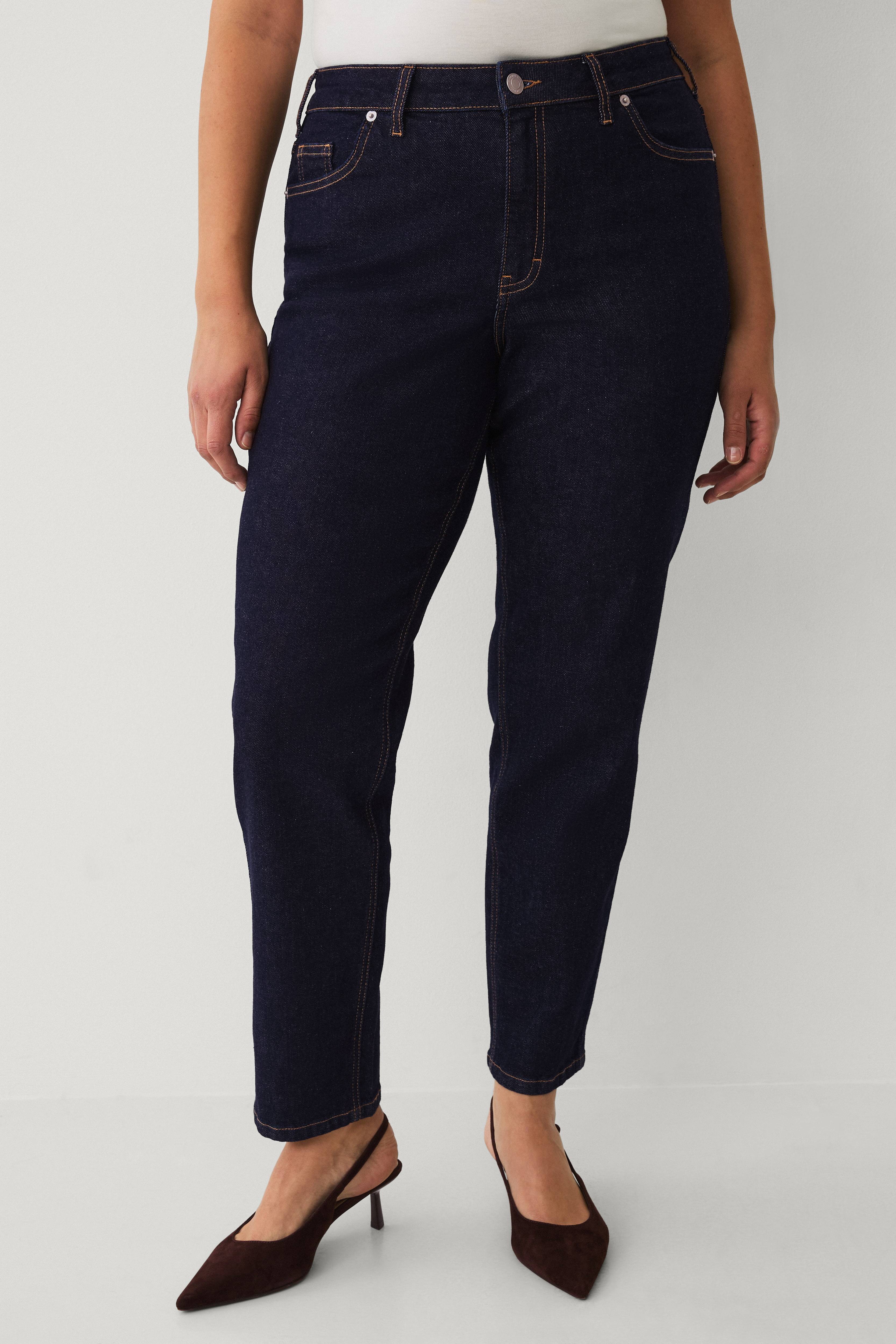 • Plusstørrelser• Femlommemodell med høy midje• Lynlås• Brede lår med avsmalnet benende• Indre benlengde: 76 cm i størrelse 44
