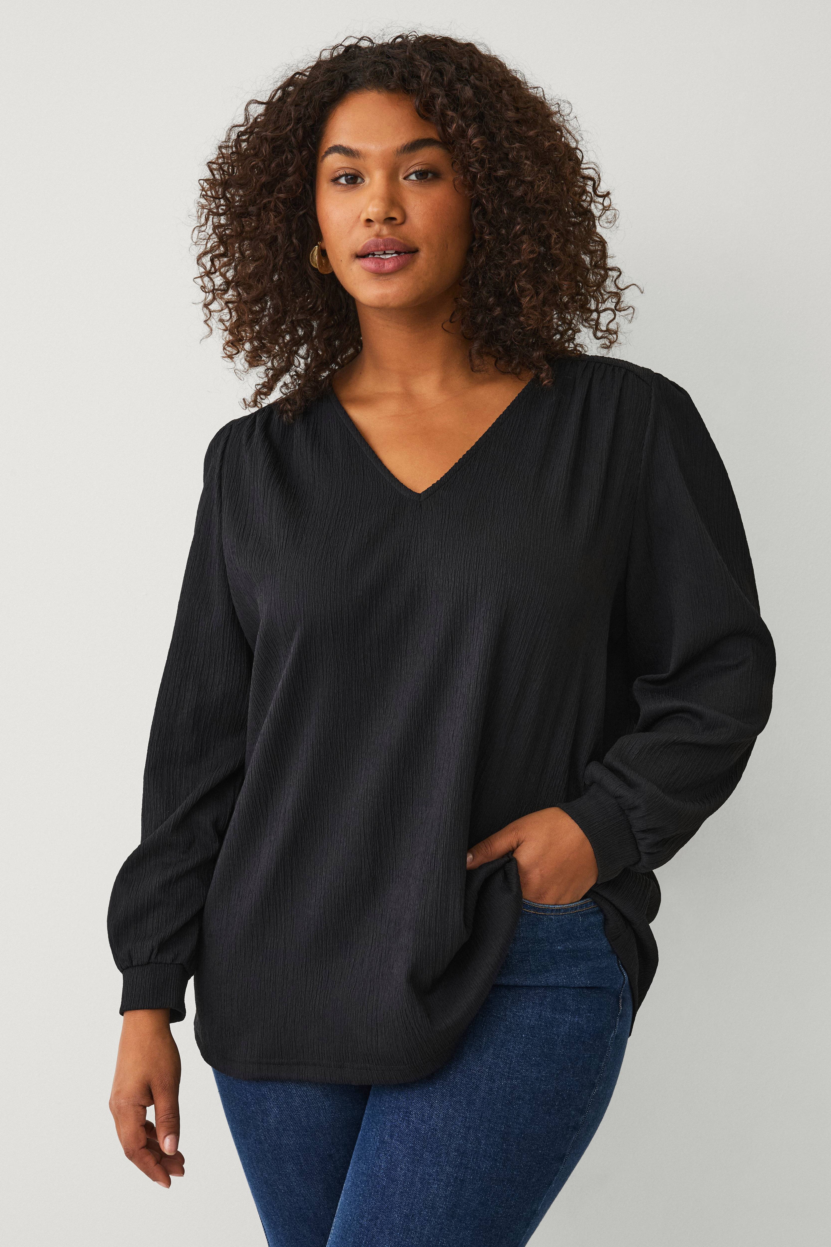 • Plusstørrelser• Rett, strukturmønstret modell i stretchkvalitet• Rysje frem på skuldrene• Lang bobleerme• Lengde: 74 cm i størrelse XL