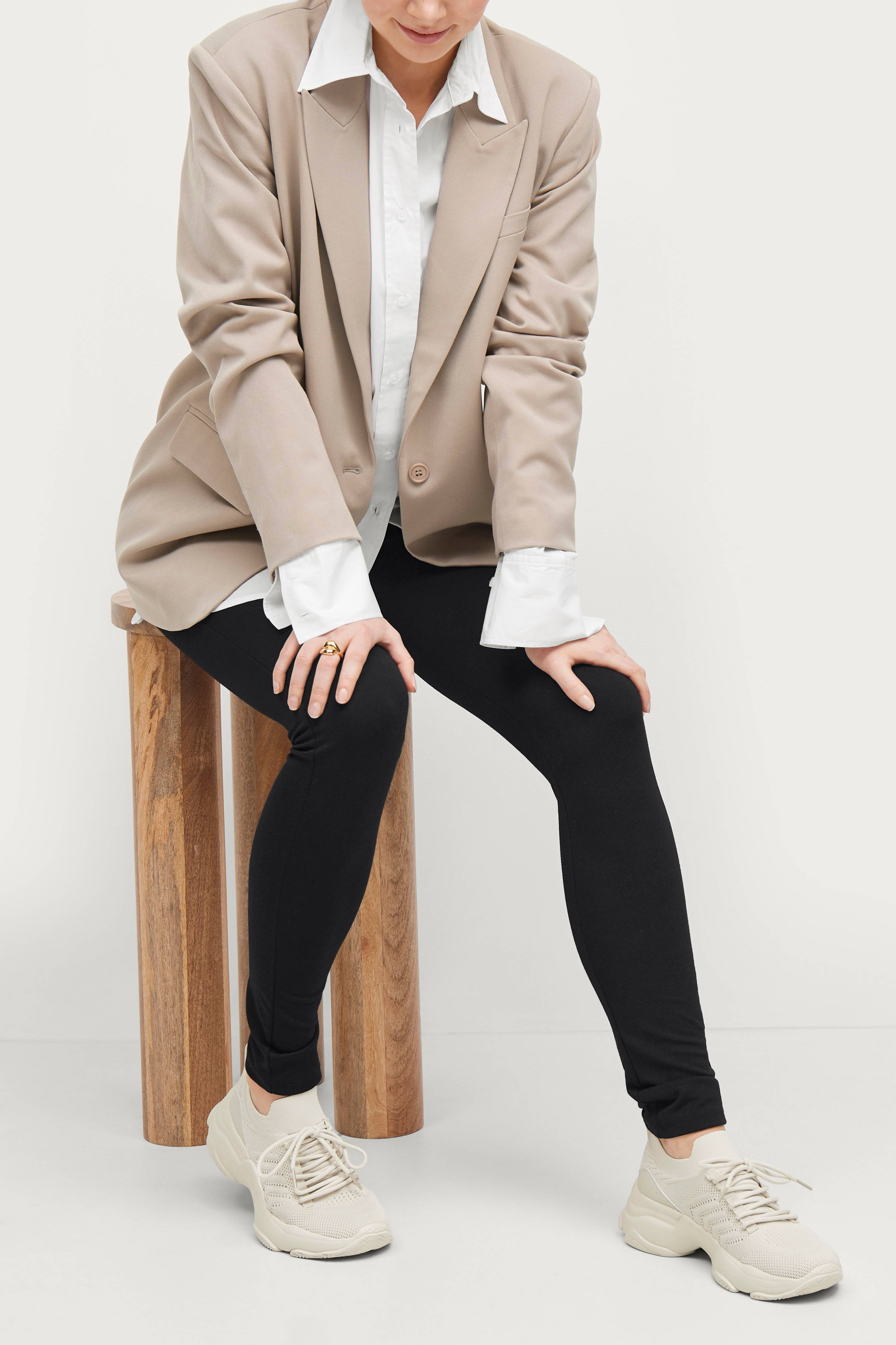 Modellen er 175 cm høy og har på seg størrelse 36