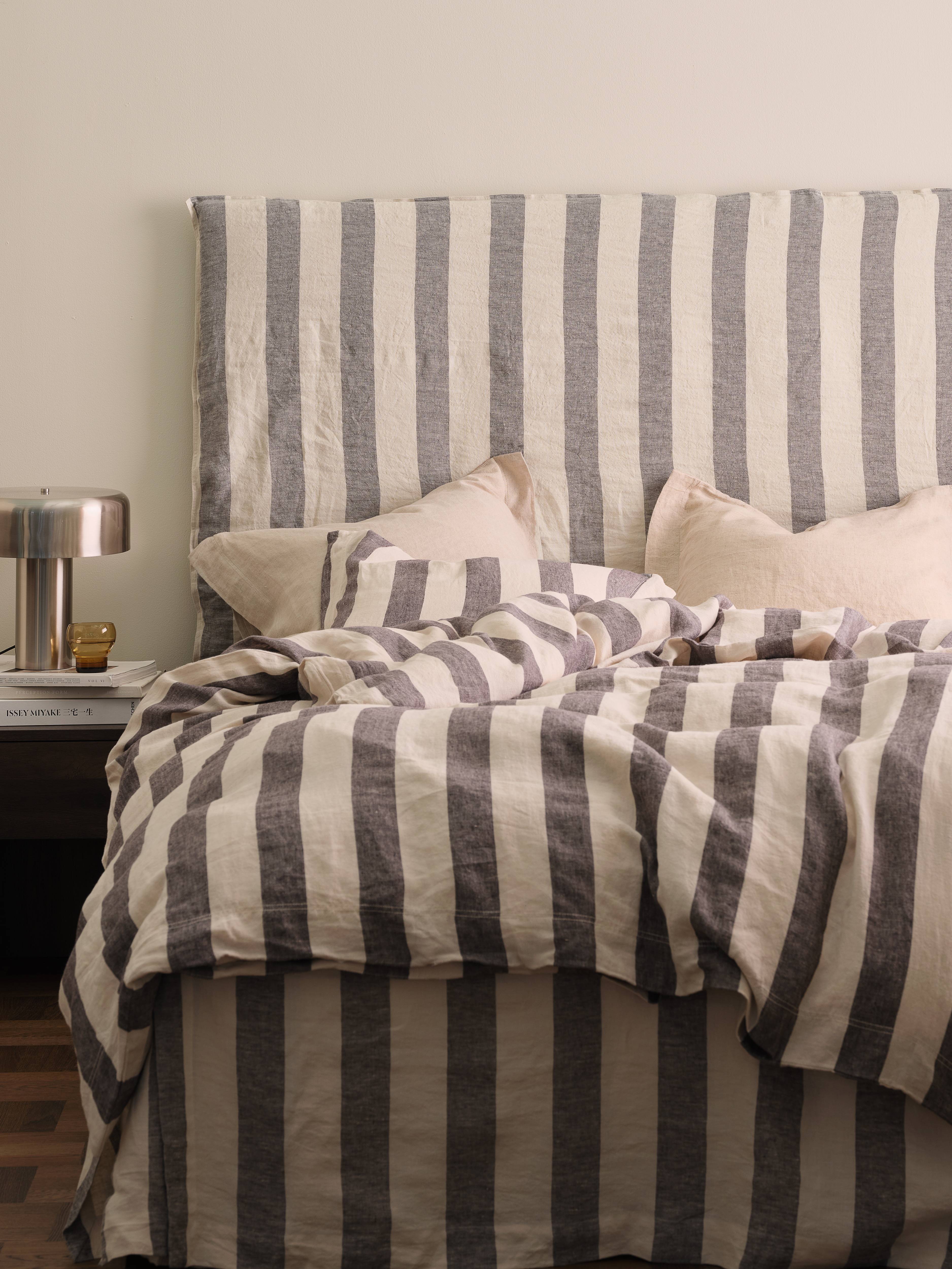 Et lintrekk som du trer over sengegavlen. Trekket har en løs passform, avhengig av dybden på sengegavlen, og gir sengen et avslappet uttrykk.