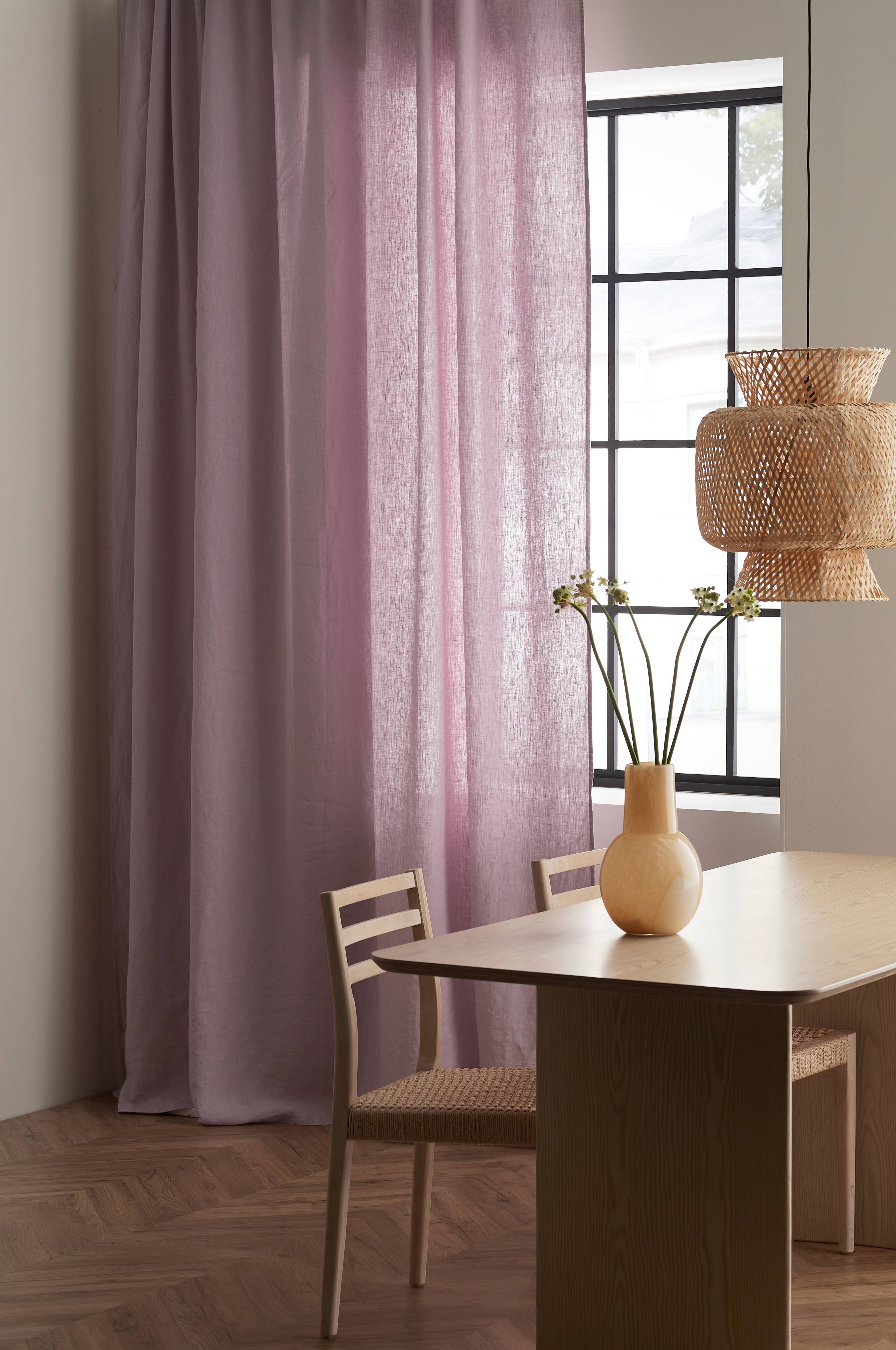 Gardin med multibånd som gjør at du enten kan henge gardinene rett på en gardinstangen gjennom de skjulte hempene eller bruke ringer og nålkroker (ikke fingerkroker). Kan også brukes med rynkebåndskrok. Av vasket lin med vakker tekstur. Snoren i rynkebåndet gjør at du lett kan skape jevne, fine folder. Tørketromle på lav temperatur for å beholde en myk følelse og vasket look. Str 240x300 cm. Selges enkeltvis.