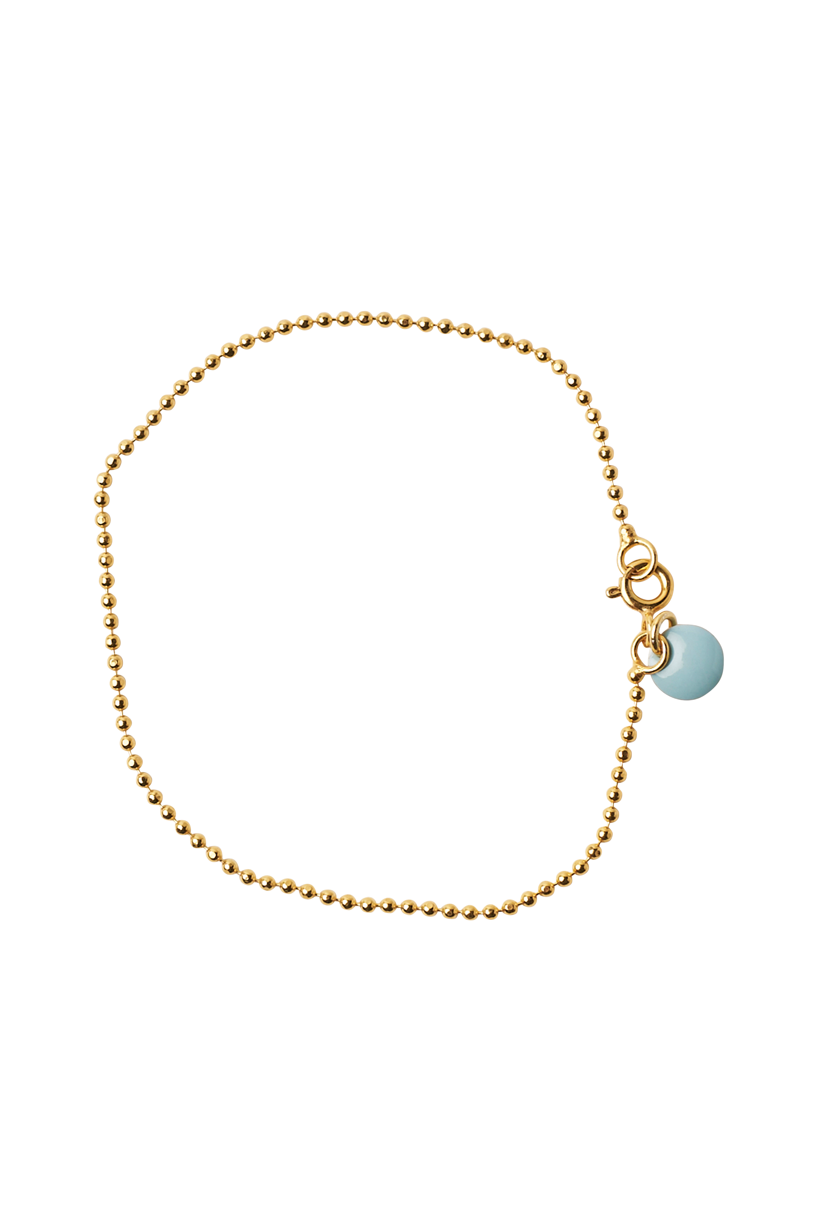 Nett armbånd med tynt kjede og lite, rundt anheng i farget emalje. Kjedet er i 18 k gullplettert sølv.
