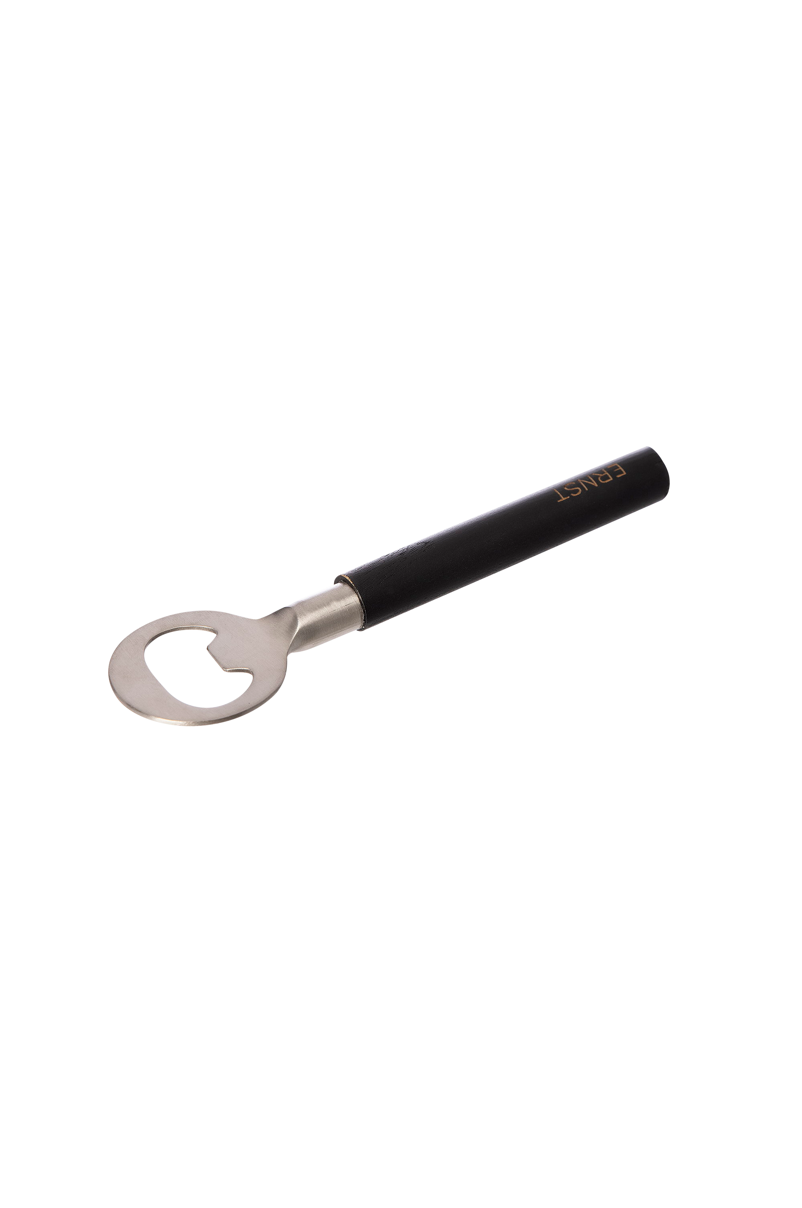 Dekorativ flaskeåpner i svart tre med forkrommet metall.