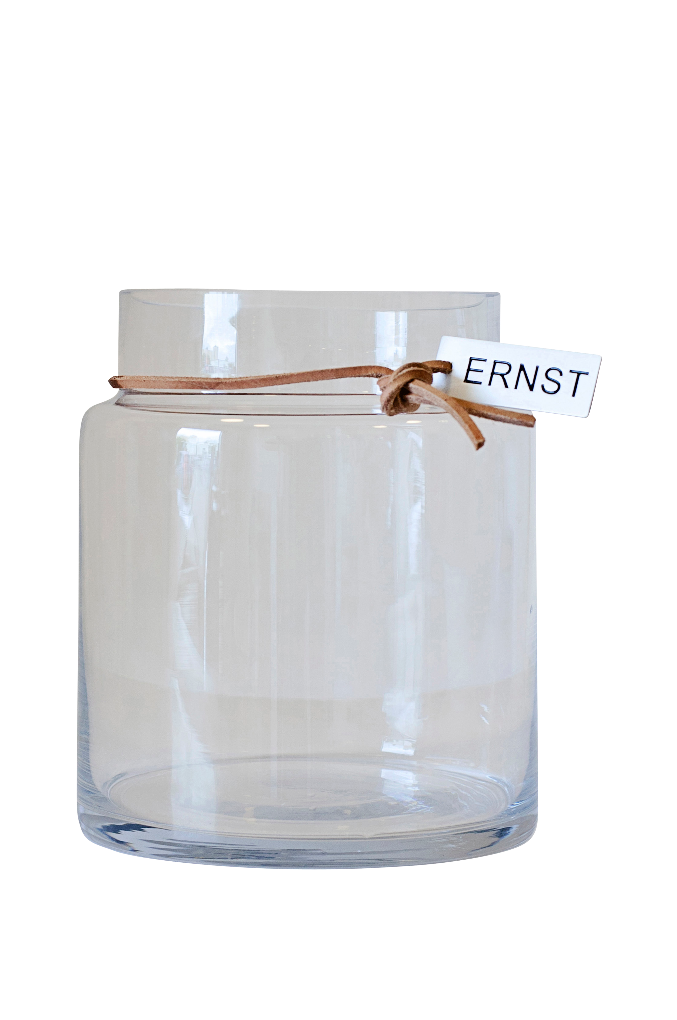 Stueplanter og snittblomster skaper liv og glede i alle hjem. I ERNST krukke/vase med skinnsnor kan du skape vakre blomsterarrangementer. Størrelse: Ø 12,5 cm, h 22,5 cm.