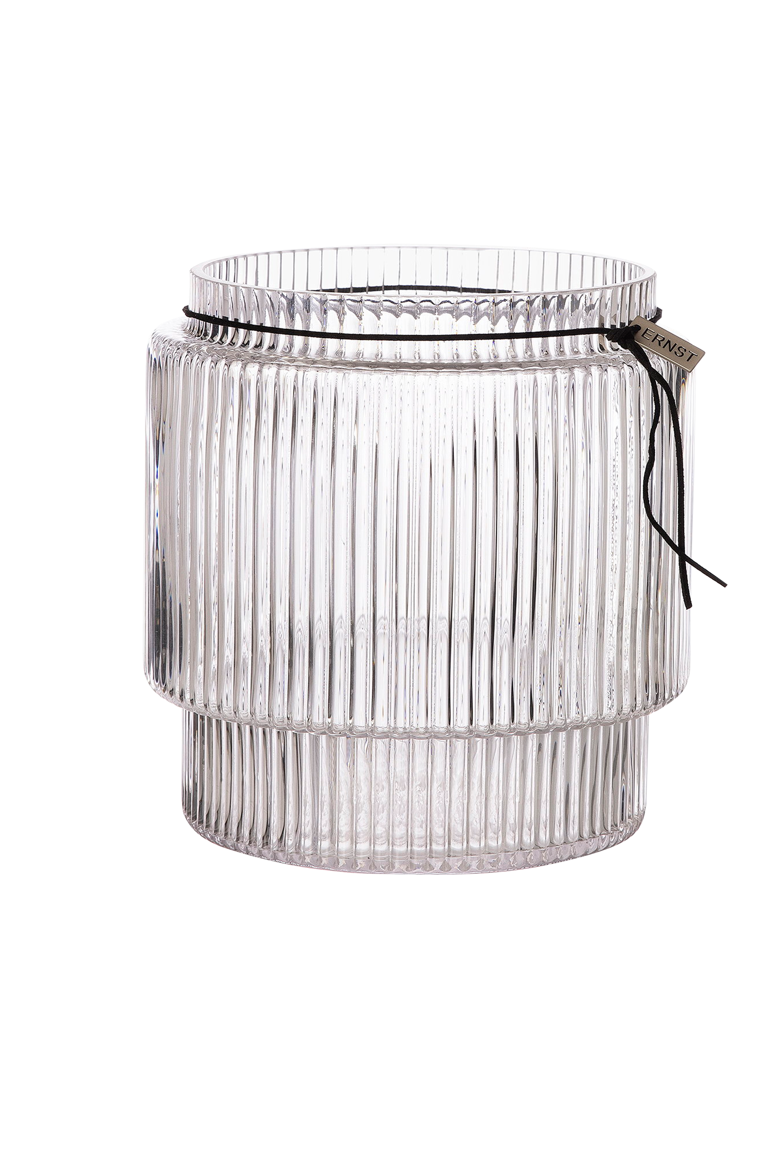 Snittblomster skaper liv og glede i ethvert hjem. I ERNST rette glassvase kan du skape vakre blomsterarrangementer. Vasen blir ekstra elegant på sin lille fot, og det klassiske lærbåndet er en fin detalj. Kan også brukes som lyslykt.