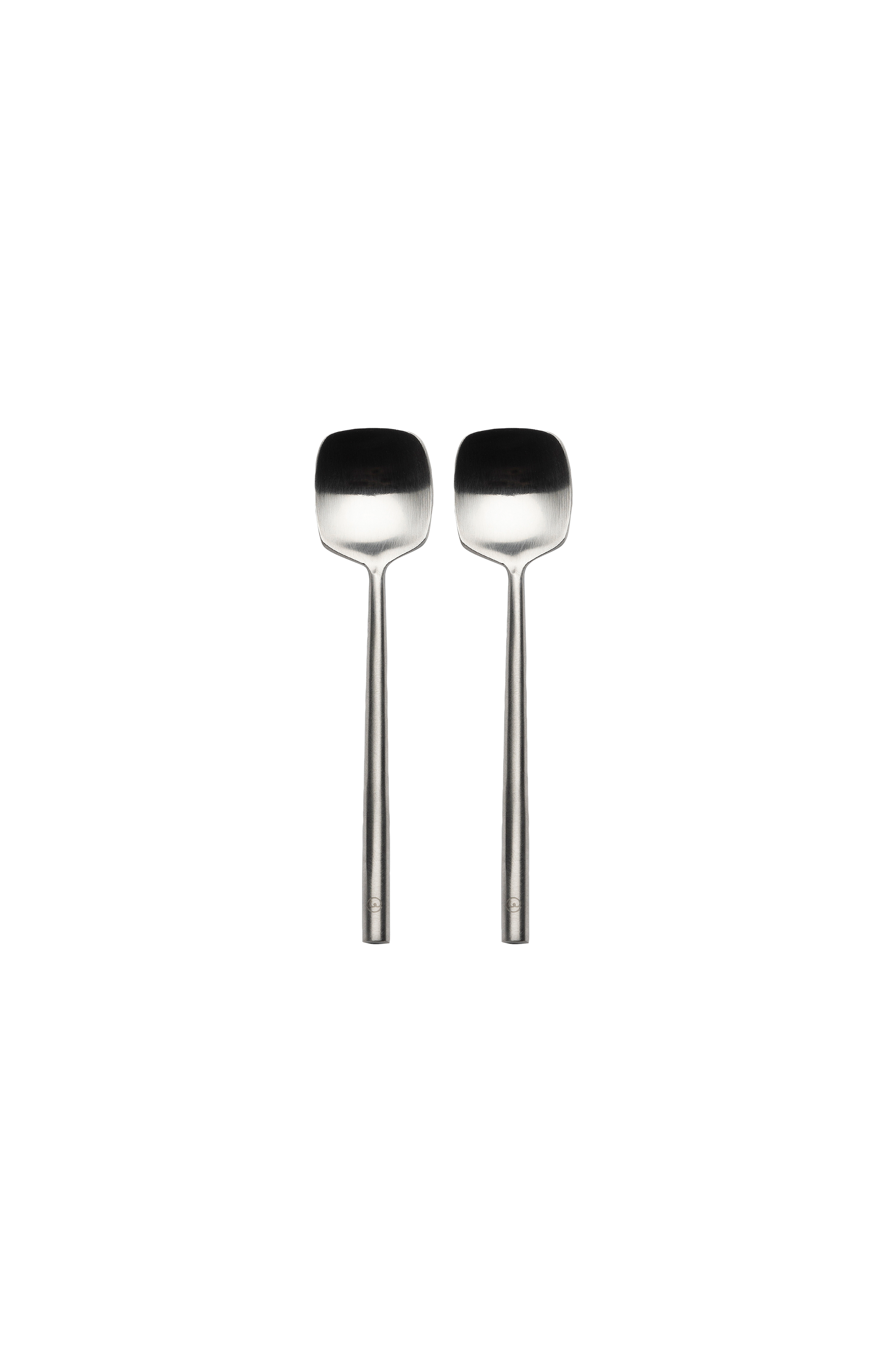 Elegante skjeer i rustfritt stål. Leveres i fin gaveeske. Det finnes også måleskje, korketrekker, smørkniver, flaskeåpner, osteknivsett samt småbestikk i samme serie. Mål: bredde 2,5 cm, lengde 11 cm.