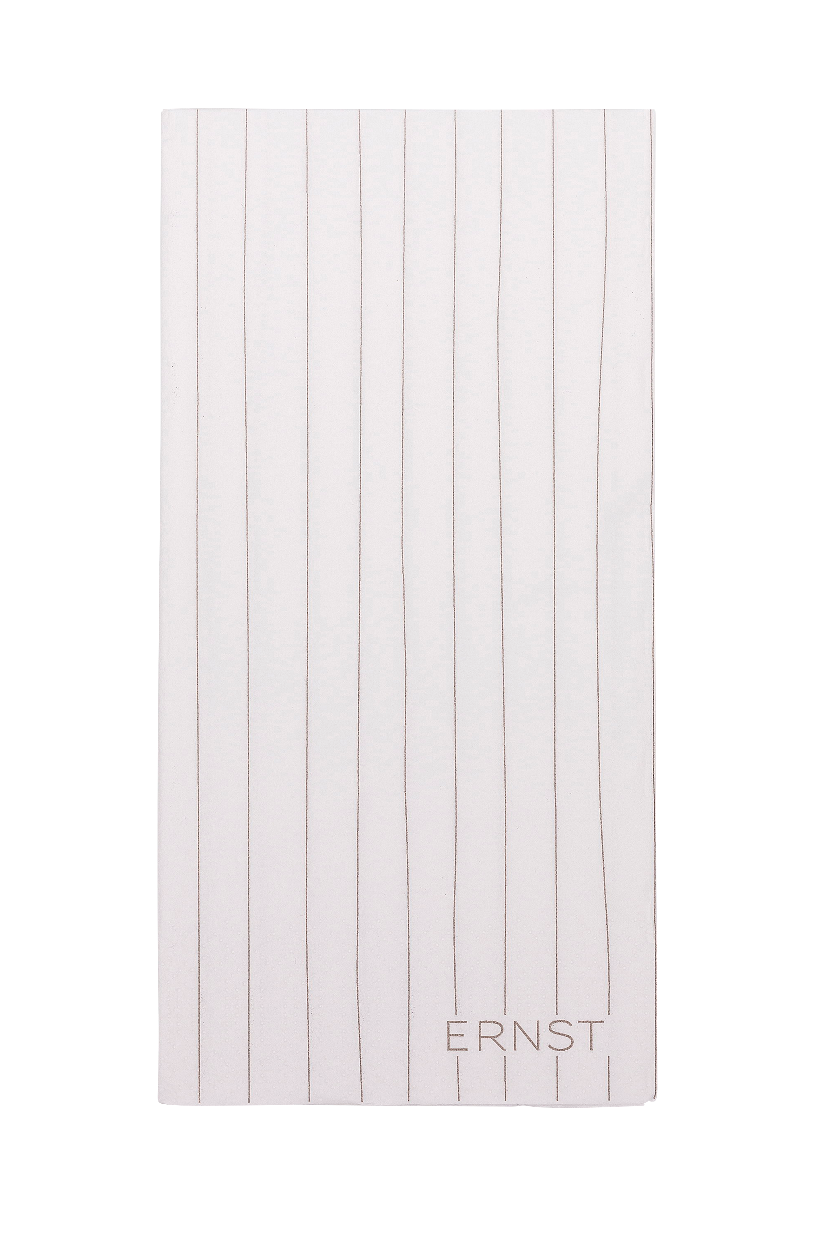 Ernsts stripete serviett har et vakkert, klassisk mønster som gir borddekkingen et tidløst uttrykk. Perfekt til både familiemiddager og hverdagens små øyeblikk. Brett den pent for en ekstra detalj, eller la den ligge enkel og ren ved siden av tallerkenen. Servietten er en detalj som løfter ethvert måltid.