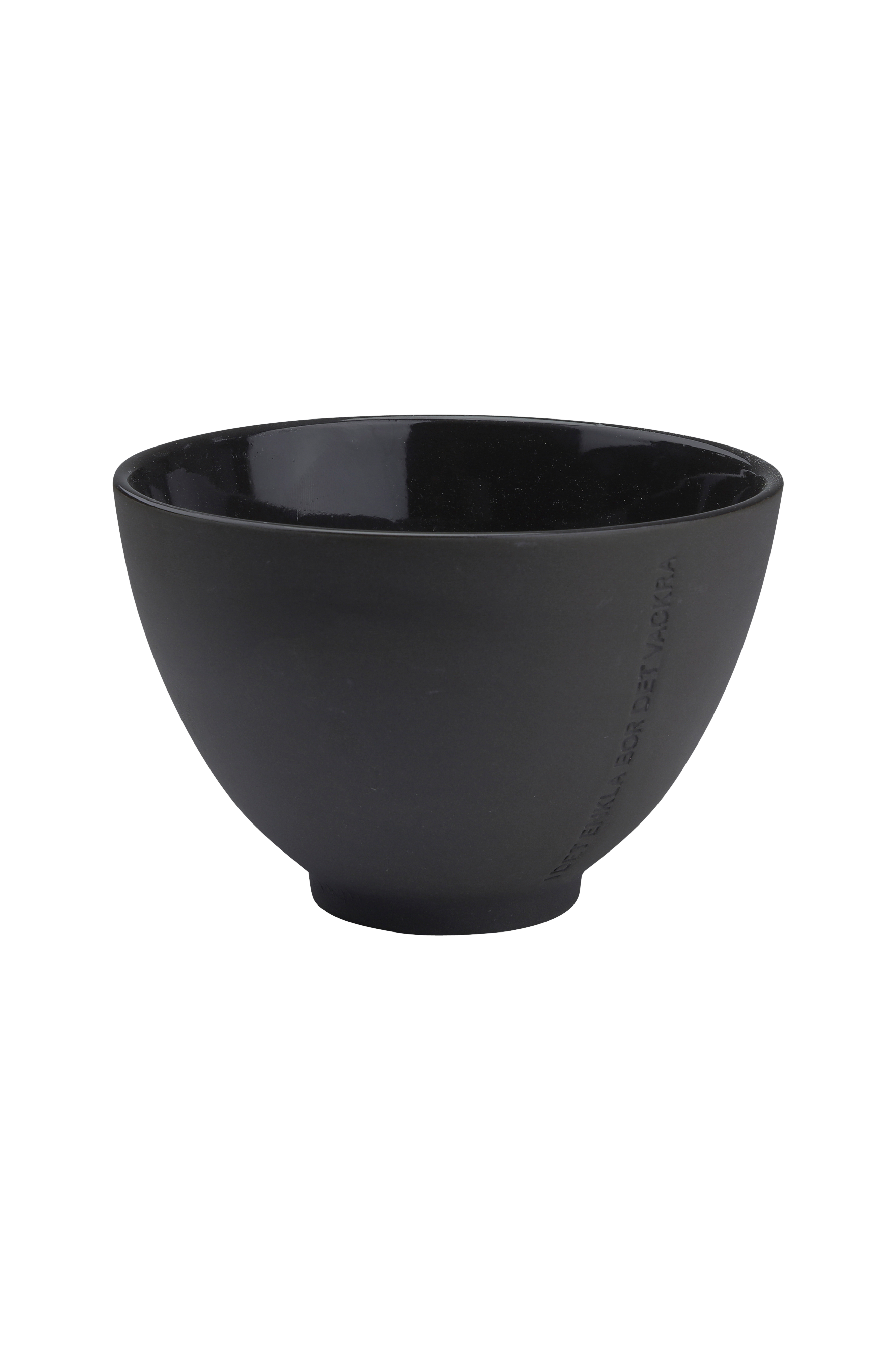 ERNST populære servise i steintøy har duse farger og matt utside som gjør at det passer i alle hjem. Denne fine skålen passer til godteri, nøtter, frukt eller lignende. Størrelse: Ø 13 cm, H 8 cm, med sitatet " I DET ENKLA BOR DET VACKRA".
