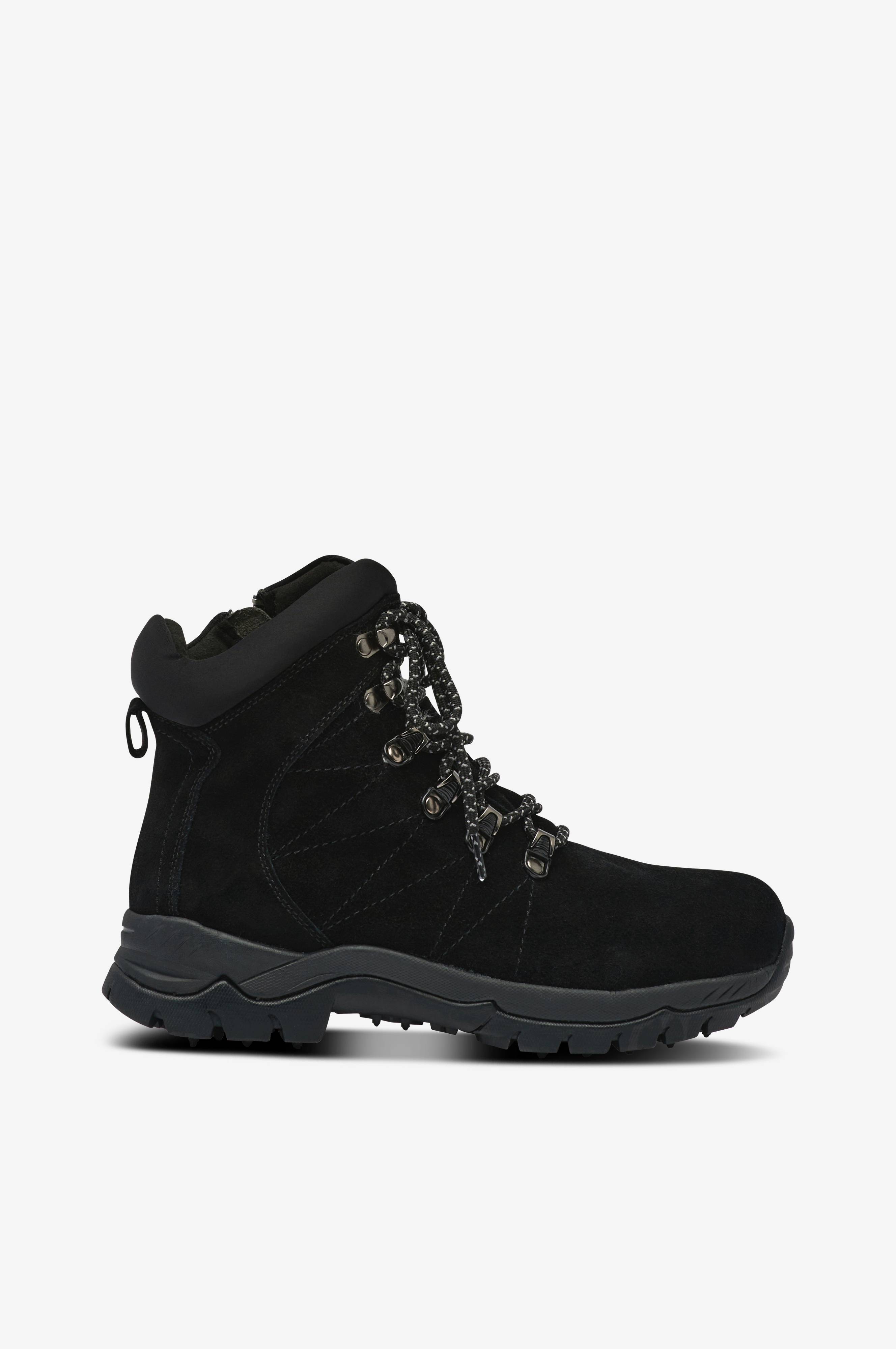 • Varm-forete vinterskoletter i semsket skinn• Varmende foring i fårepels• Polstring øverst på skaftet• Snøring• Glidelås på innsiden av skaftet• Draflik bakpå• Yttersåle i gummi med knotter i herdet stål• Skafthøyde: 12 cm i størrelse 37