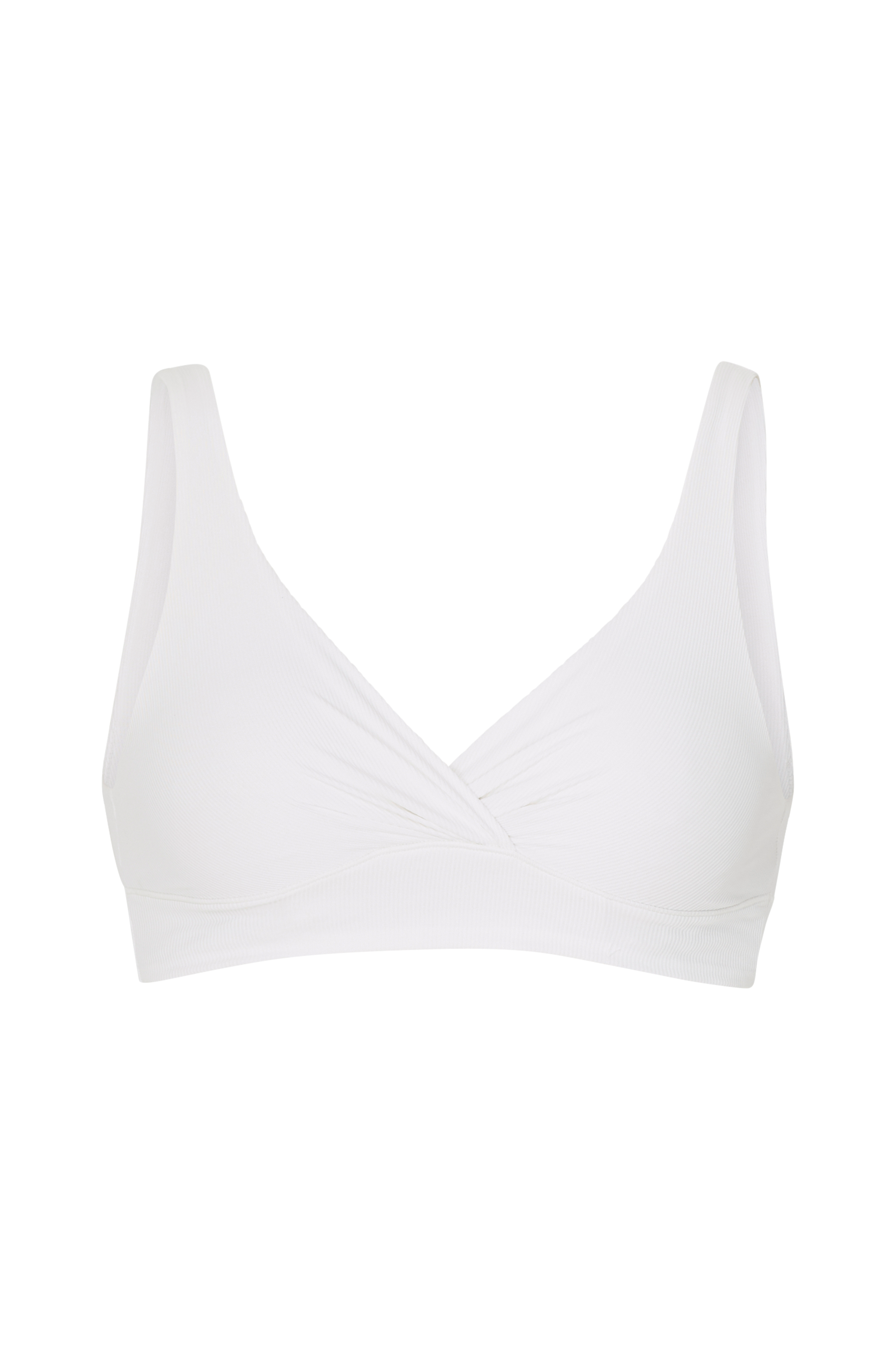 • Ikke polstret BH-en uten brakett• Ribbet materiale• Overlappdesign med rynke• Elastisk kant på bunnen