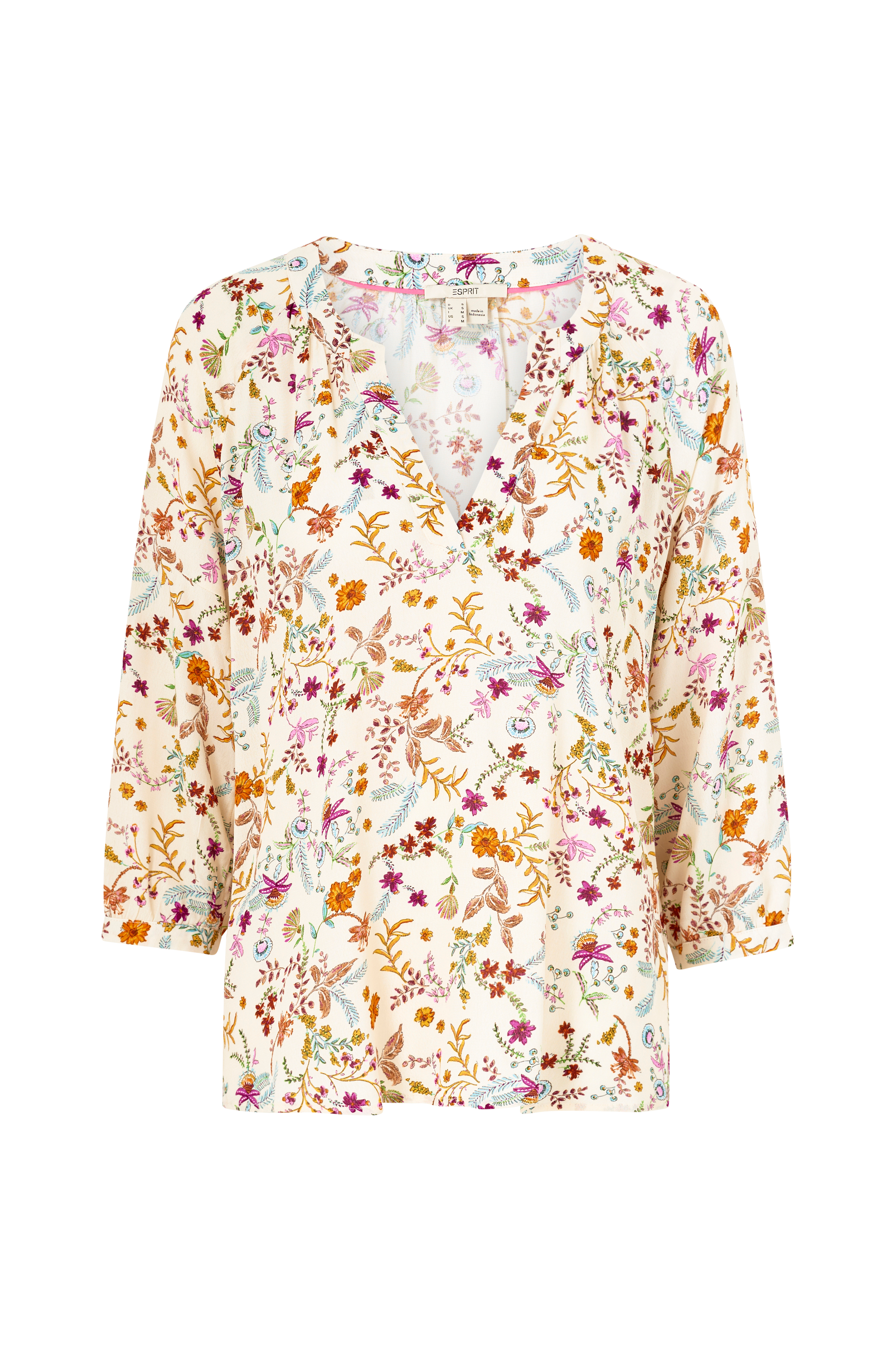 • Rett modell• Hals med rysje rundt og v-hals snitt foran• Arm 3/4 lang med tynn mansjett