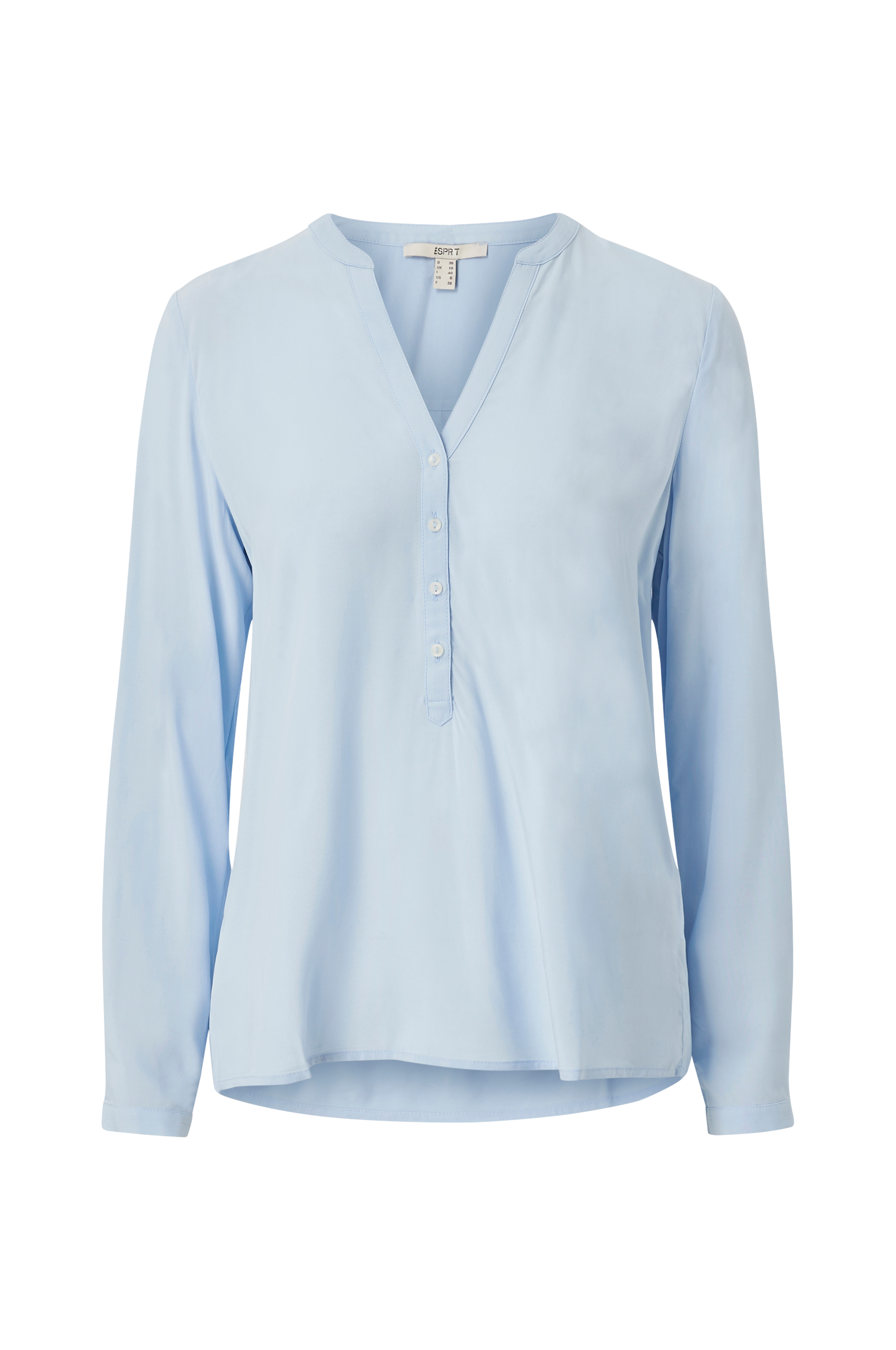 Bluse fra Esprit i fin, vevd viskose. V-utringning med knapper foran, og lange ermer med smal mansjett og knapp i ermekantene. Innvendig hempe for praktisk opprulling av ermene.