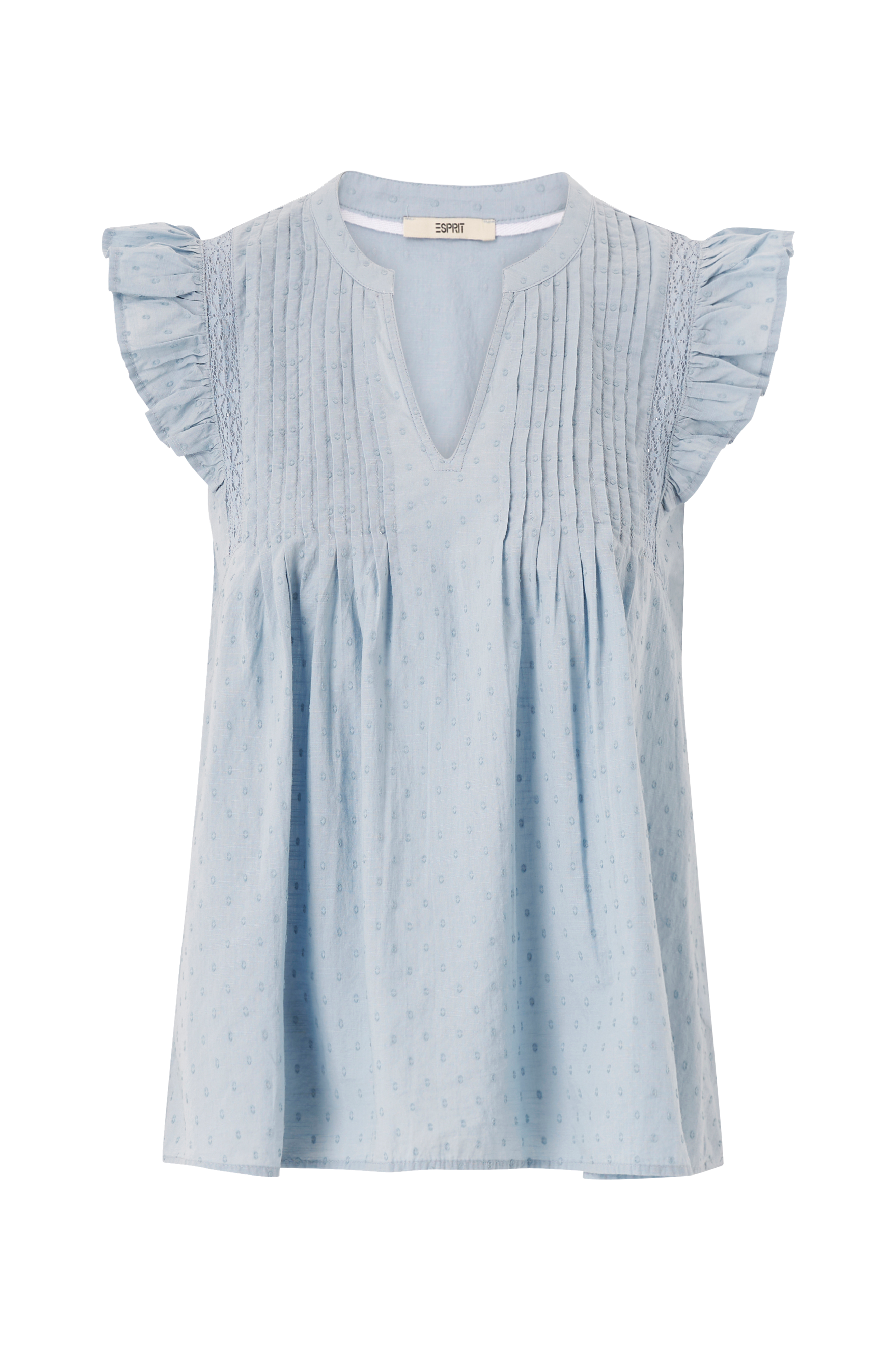 • Utsvingt modell• Volanger på skuldrene• V-hals snitt• Sydd folder foran og bakpå
