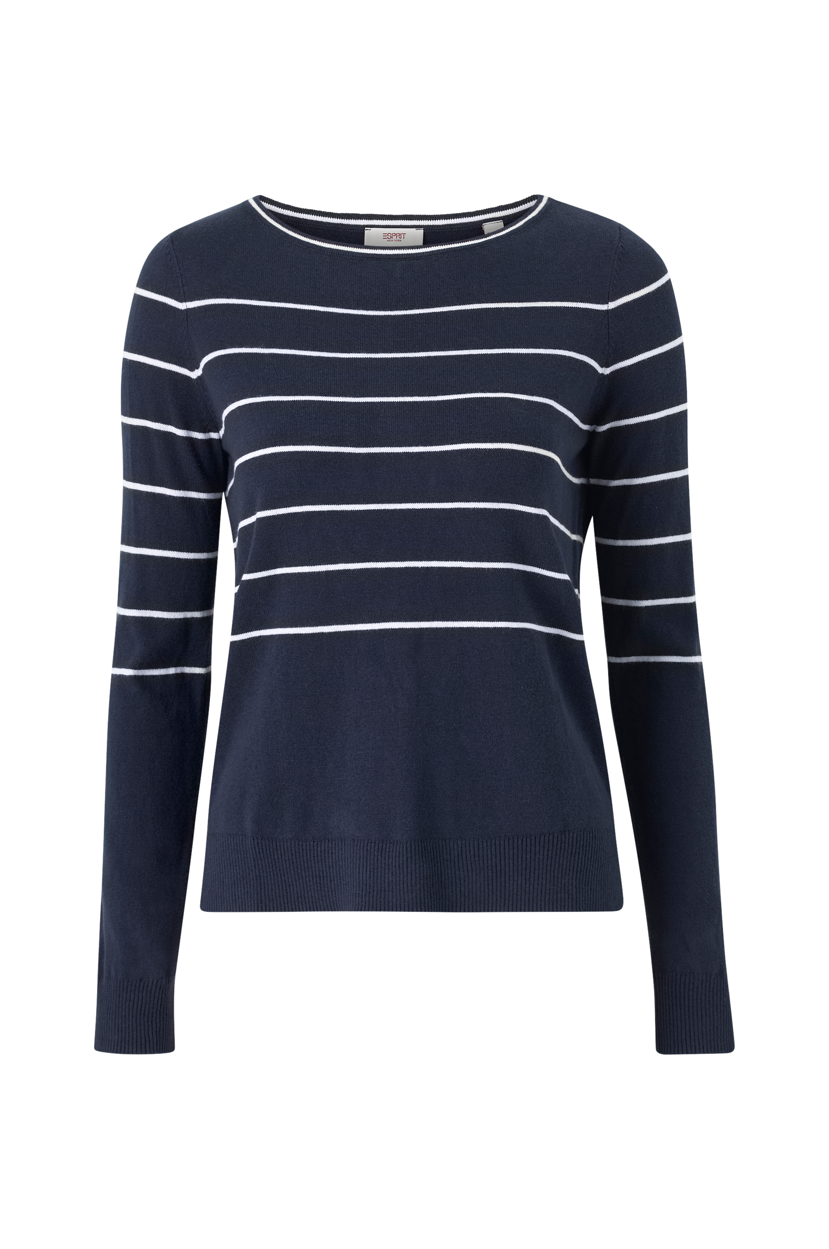 • Rett modell• Bred hals med tynn ribbet kant• Ribbestrikk i ermeslutten og i nedre kant• Kort skjær nede i sidene