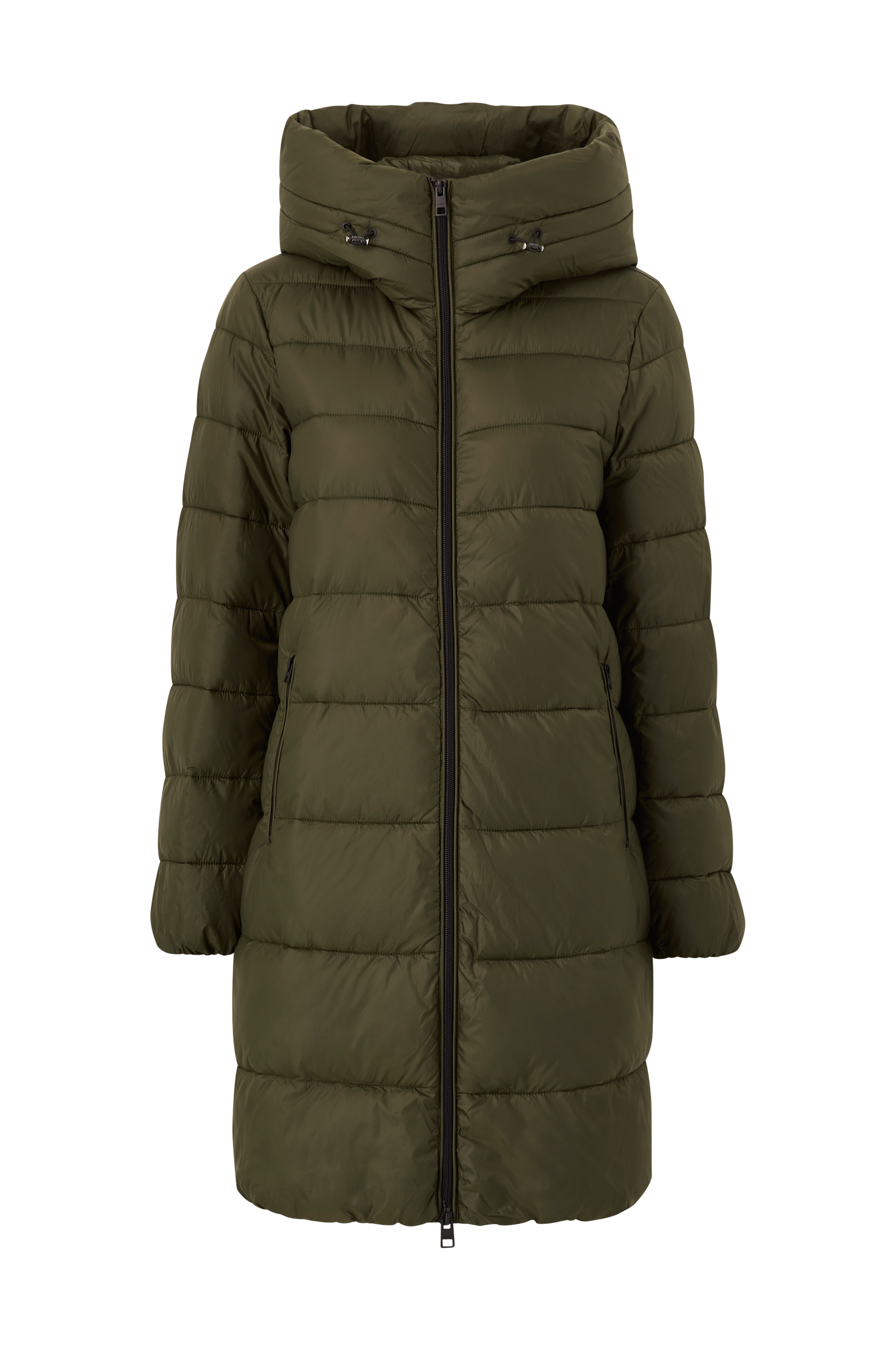 • Polstre kåpe • To-veis glidelås • Høy krage med hette • To glidelåslommer • Glidelåser i sidene • Lengde: 92 cm i størrelse S • Produktet inneholder gjenvunnet materiale som er brukt for å redusere mengden avfall, samtidig som det ikke er brukt nye ressurser.