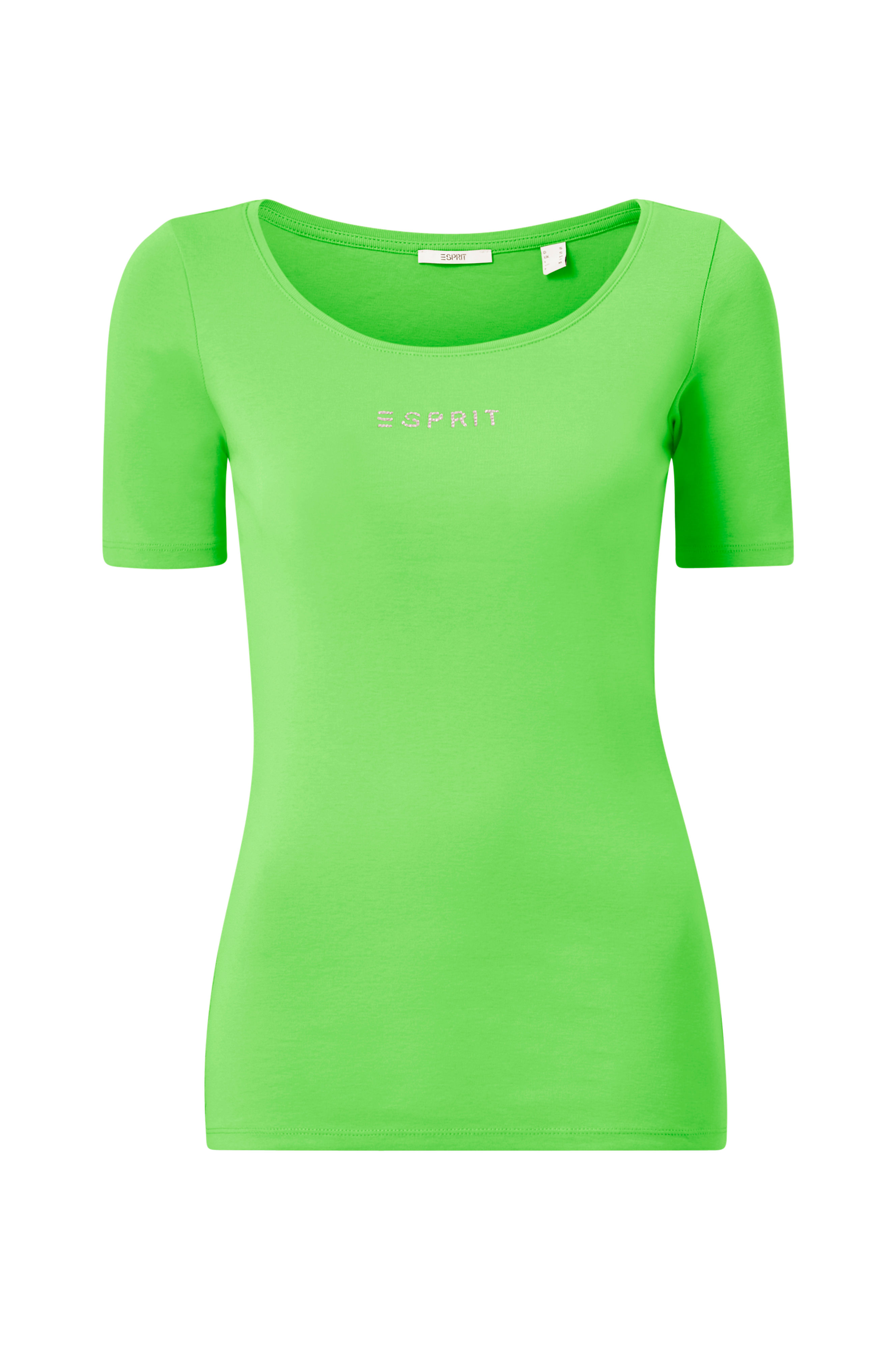 - Kortermet topp i bomullstrikot- Figurnær passform- Rund hals- Logo foran med gnistrende steiner