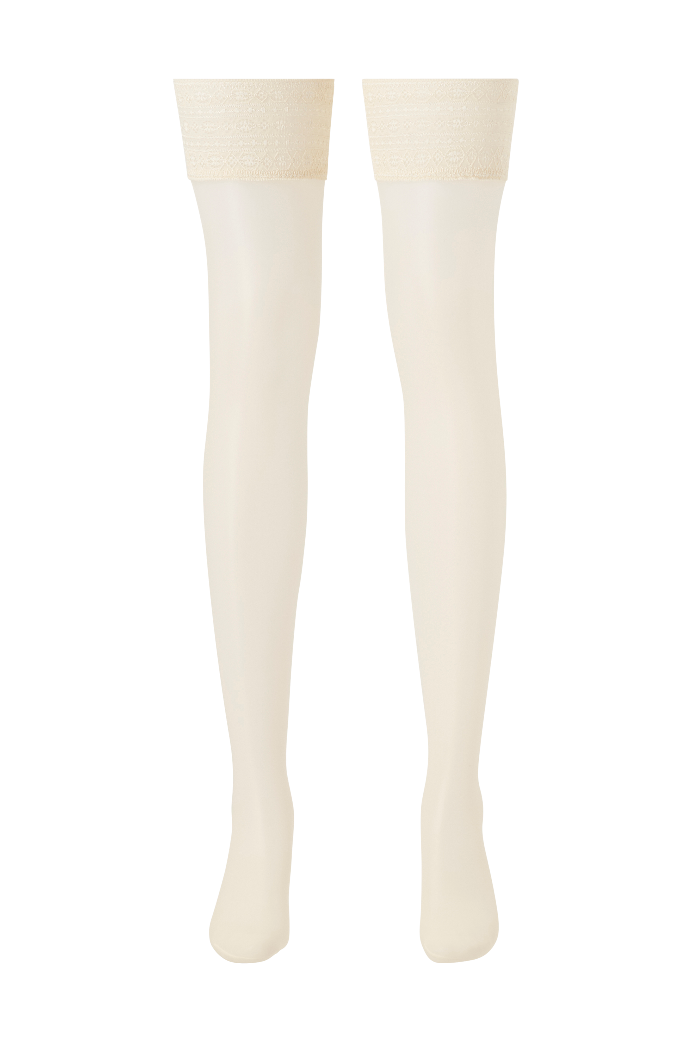 Tynne ‘stay ups' med silkemyk følelse. Behagelig tåsøm og glifri blonde med innvendig silikon øverst.