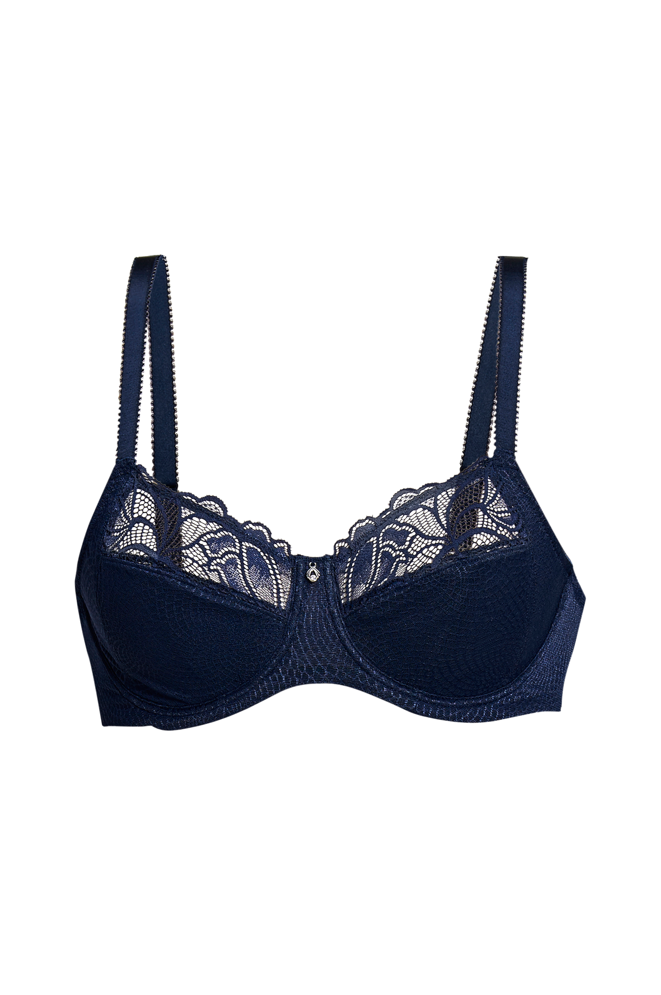 Spile-bh Memoir Full Cup fra Fantasie med tredelt blondecup med tynt meshfôr. Et lite smykke mellom cupene. Justerbare skulderbånd samt hektelukking i ryggen.