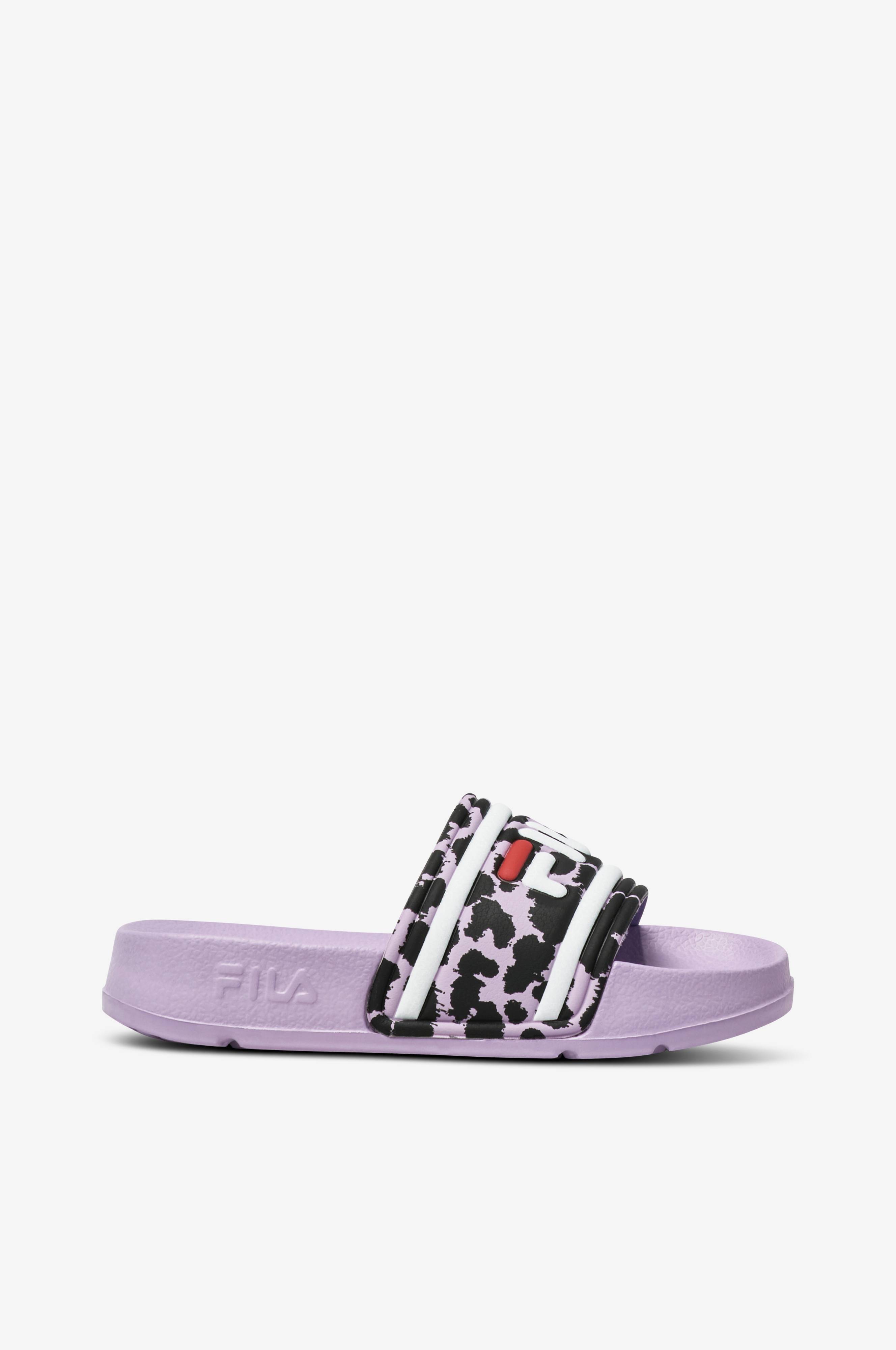 Badesandaler / slippers med myk, formet fotseng og bred rem med preget logo.