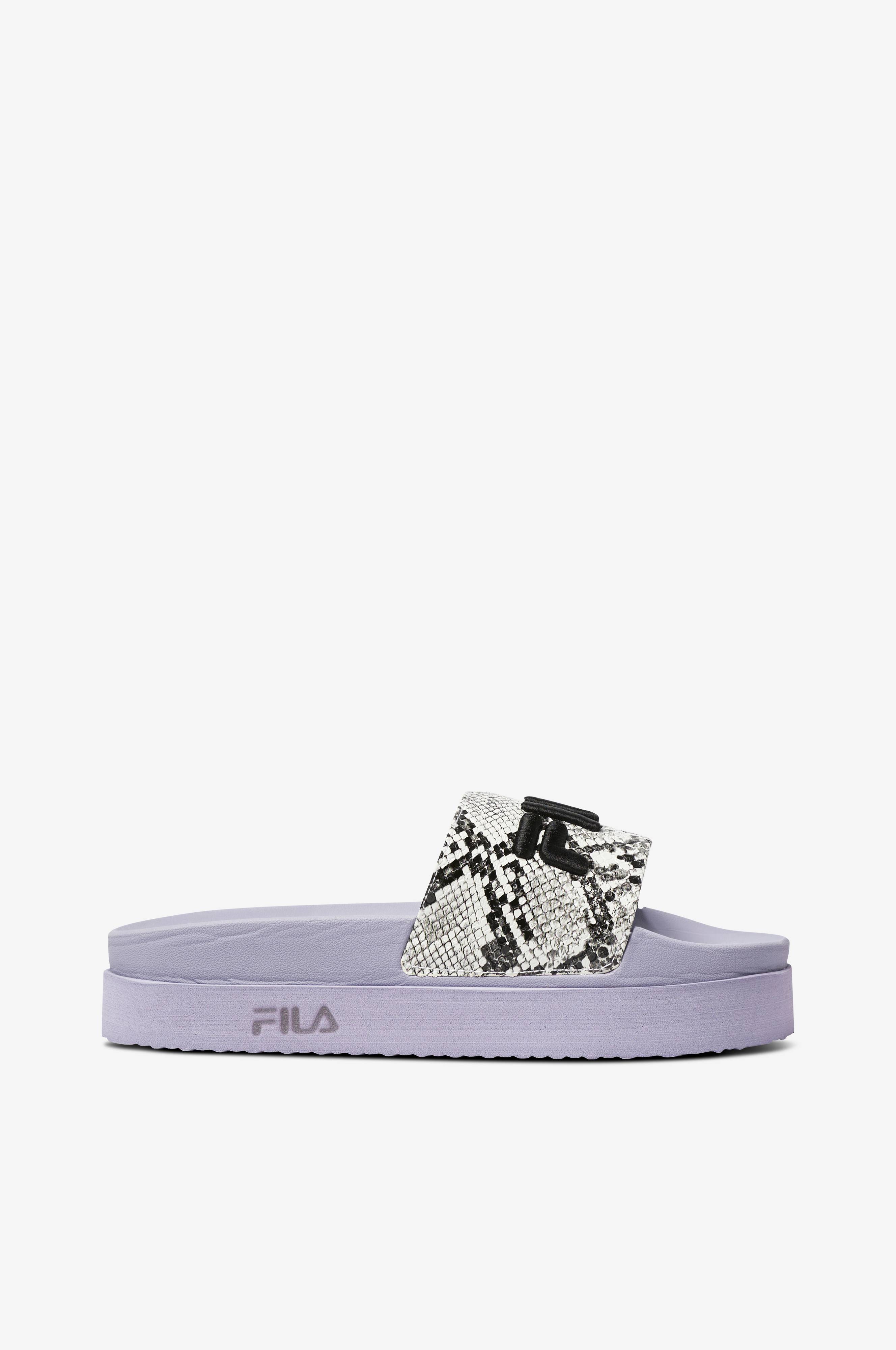 - Lett modell med platåsåle- Rem i skinnimitasjon (lakkert eller slangeskinnsmønster) med mykt tekstilfôr- Brodert, gullfarget logo- Yttersåle i EVA- Sålehøyde: 4,5 cm