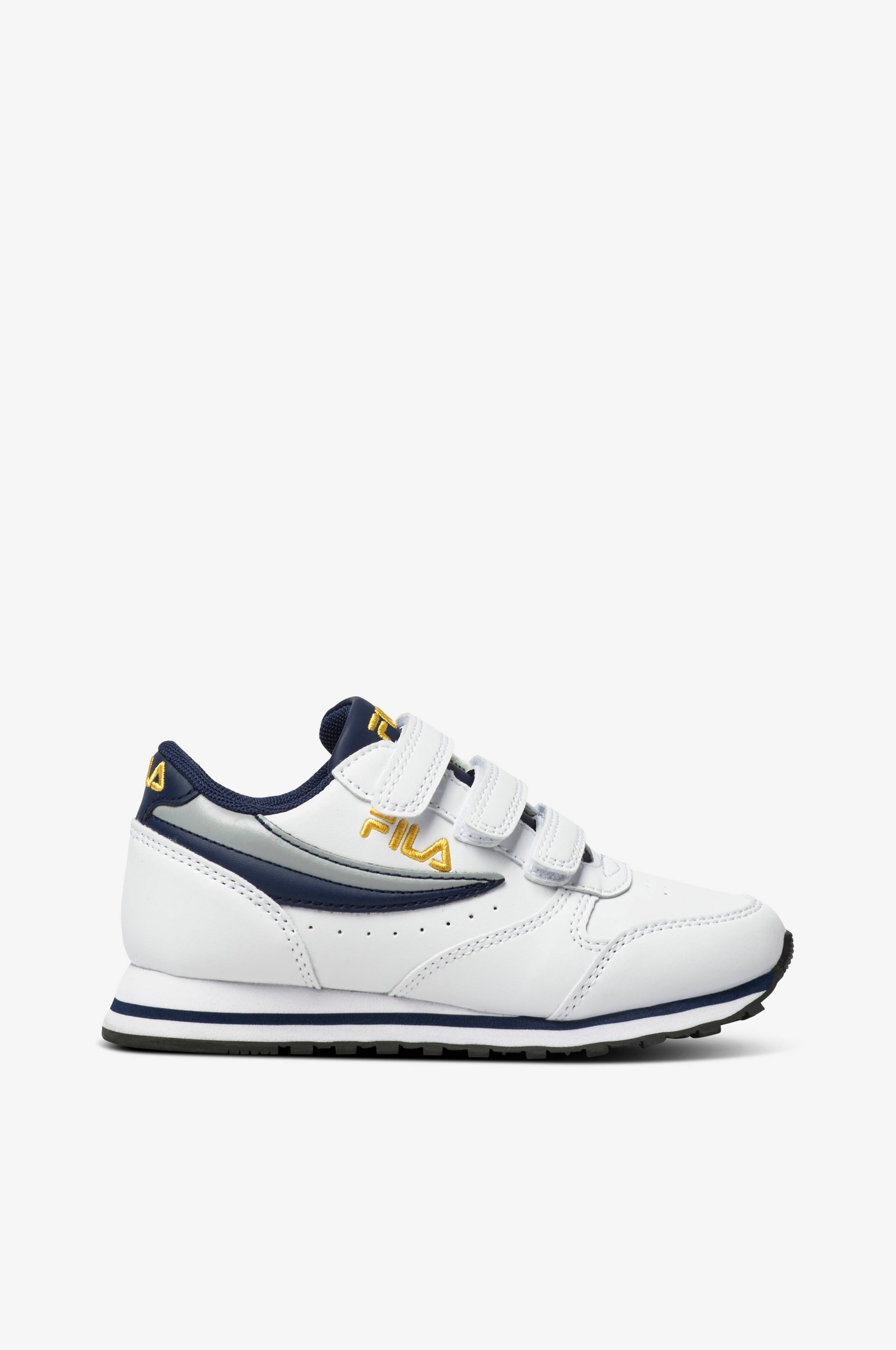 Sneakers Orbit Velcro Low Kids fra FILA er komfortable klassikere med praktiske borrelåsremmer over foten. Den sporty sålen gir skoen karakter, og er herlig sviktende og deilig hele dagen. Kant og pløse er vattert. Overdel i kunstskinn samt uttagbar innersåle.