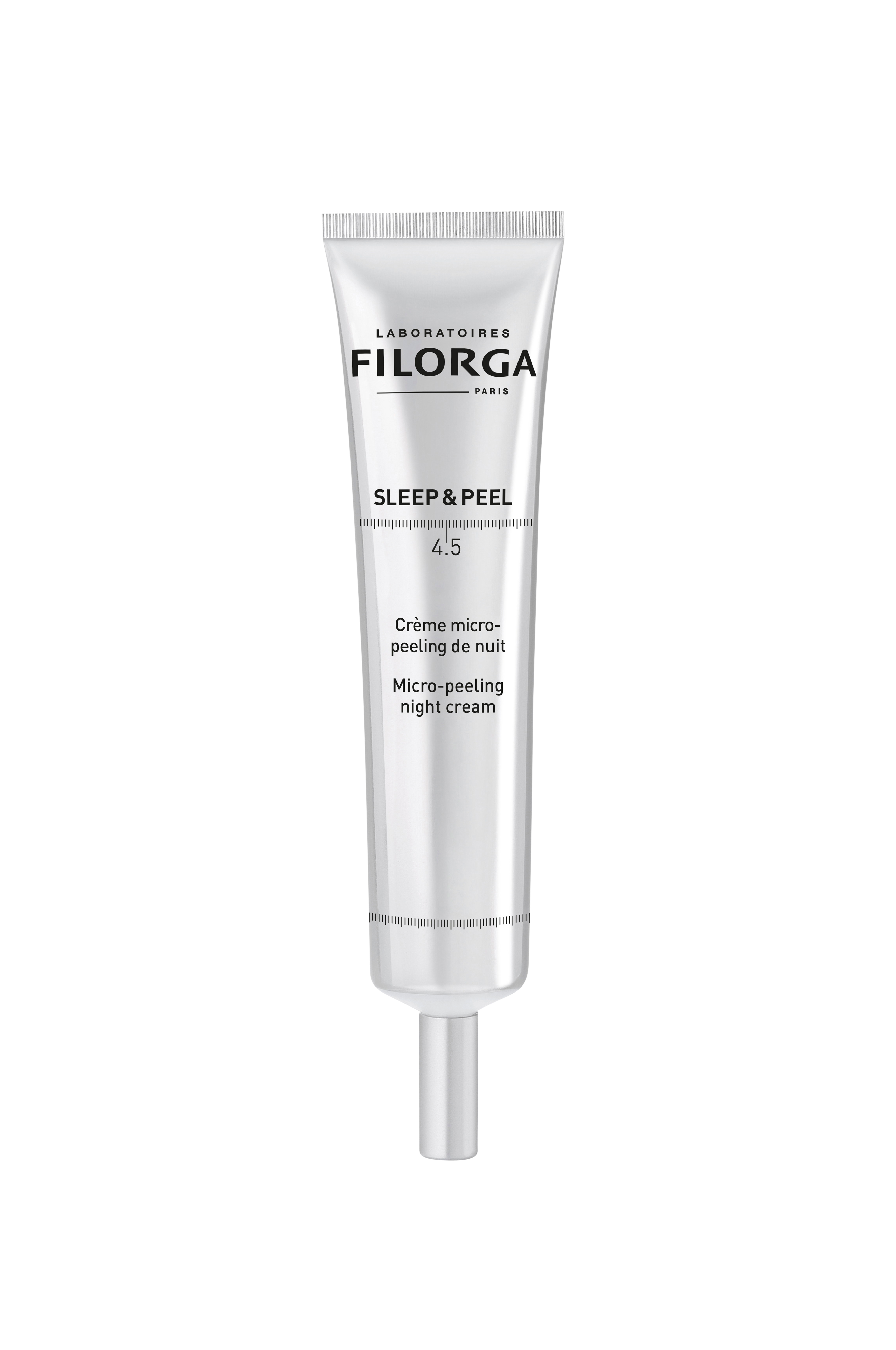 Sleep & Peel 4.5 er en mikropeelende nattkrem som stimulerer cellefornyelsen mens du sover - for "ny hud"-effekt når du våkner! Fine linjer glattes ut, gusten hud får ny glød og ujevn hudstruktur blir forfinet. Sleep & Peel 4.5 skal brukes som en 1-månedskur for beste resultat.