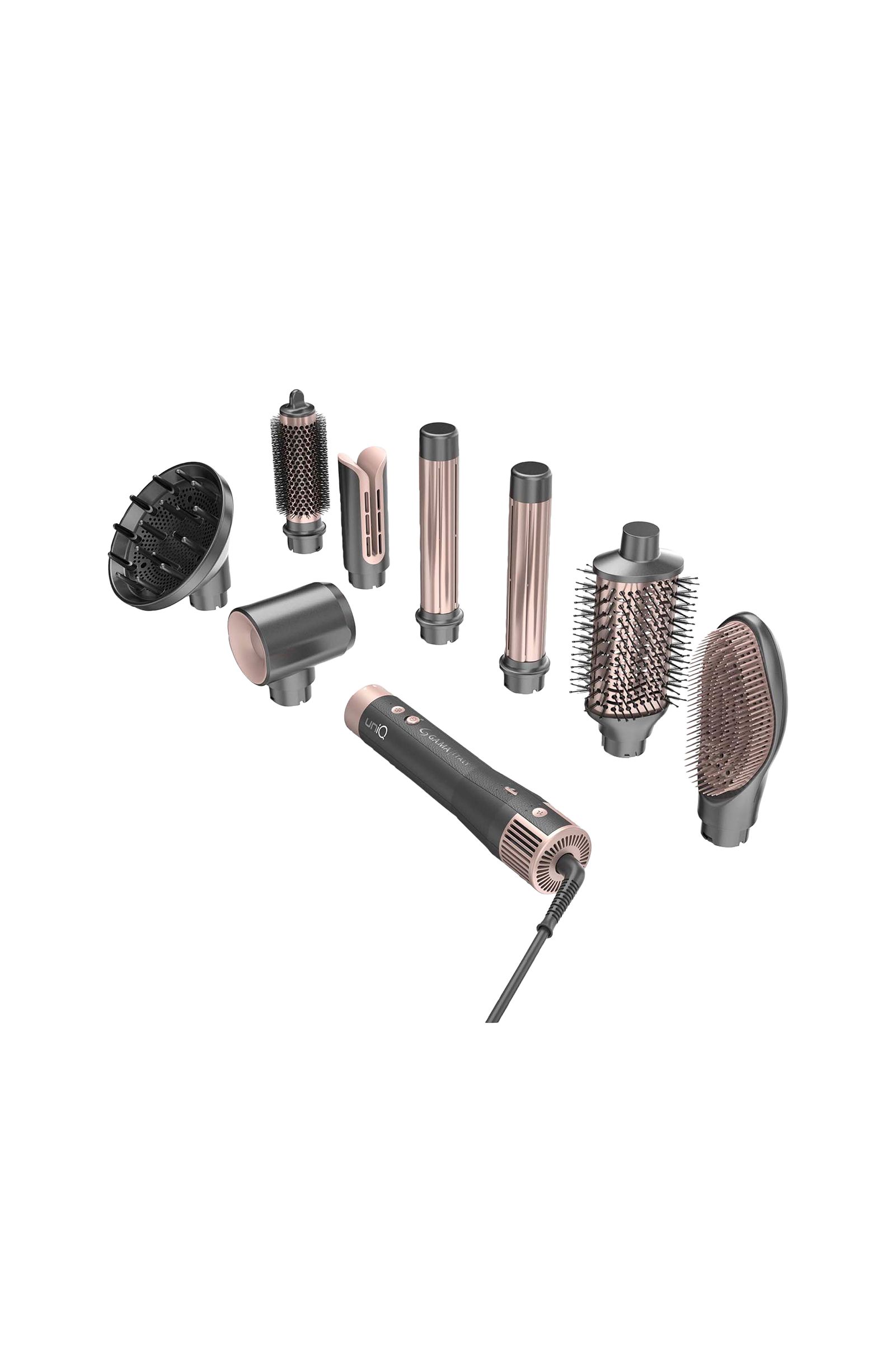 • 8-i-1 tilbehør: Coanda-krøller, oval børste, diffusor, krølltang, hårføner, rundbørste, rettetang, padlebørste