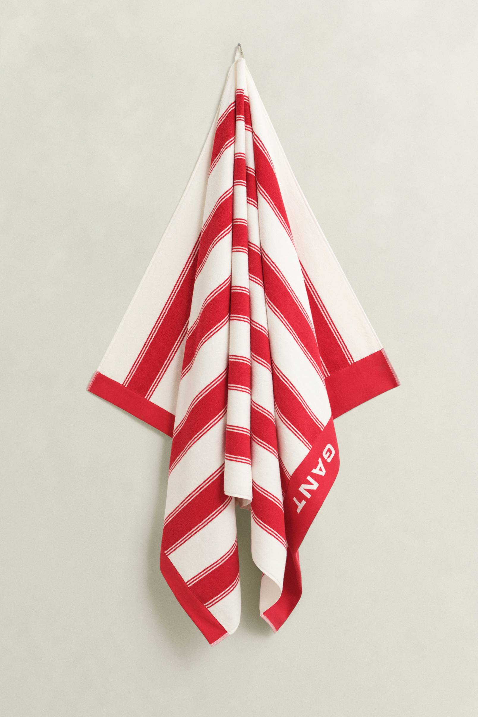 Dette badehåndkleet i frotté er designet med yacht striper som gir et maritimt preg, og er det perfekte sommertilbehøret for bassengdager, stranddager og mye mer. Det har et dristig Gant-broderi øverst.