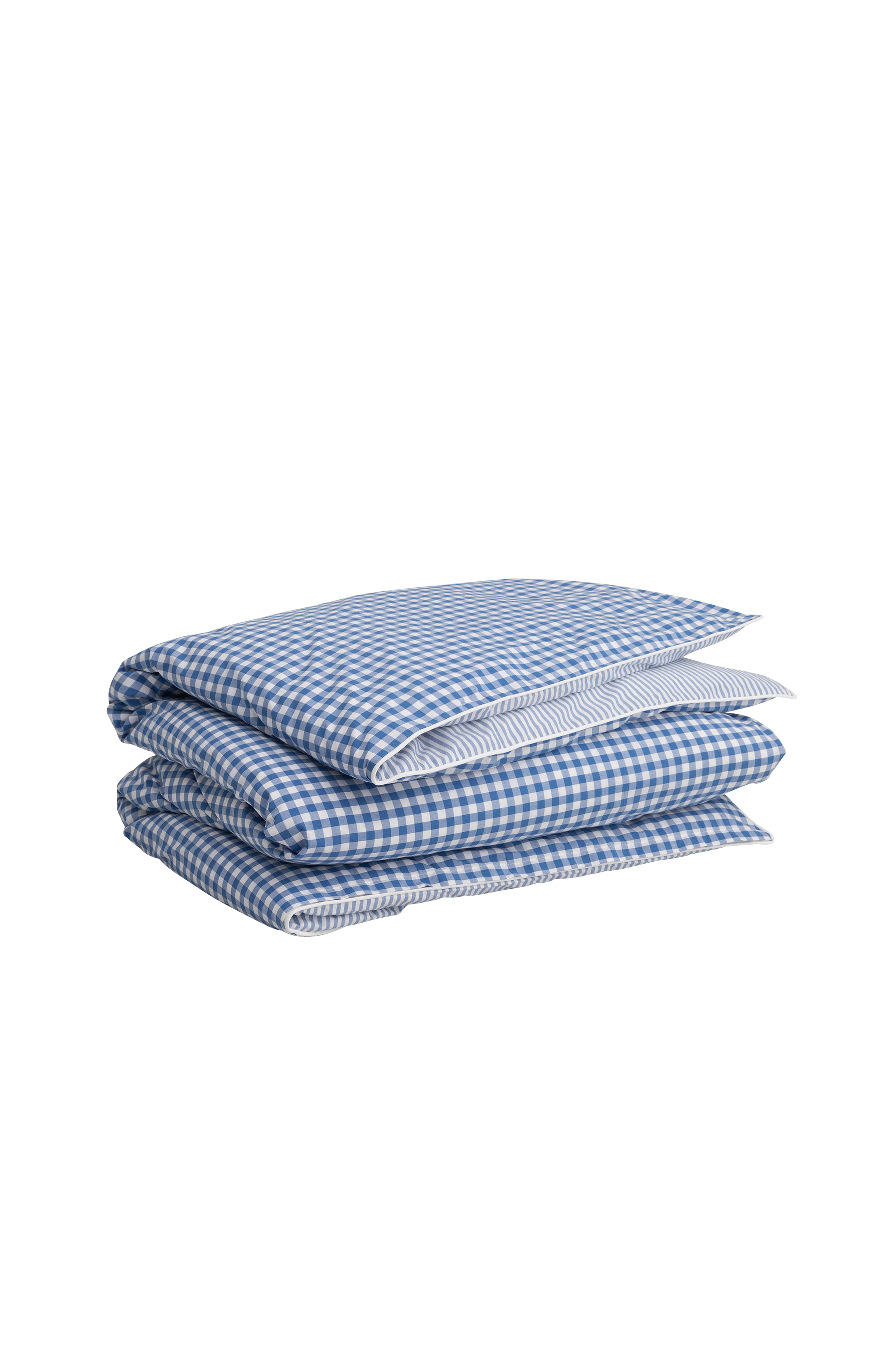 Dynetrekk med halvbrede striper i ginghamvev med en fresh hvit vinge. Produsert i 100% bomull. Putevar og dynetrekk selges separat.