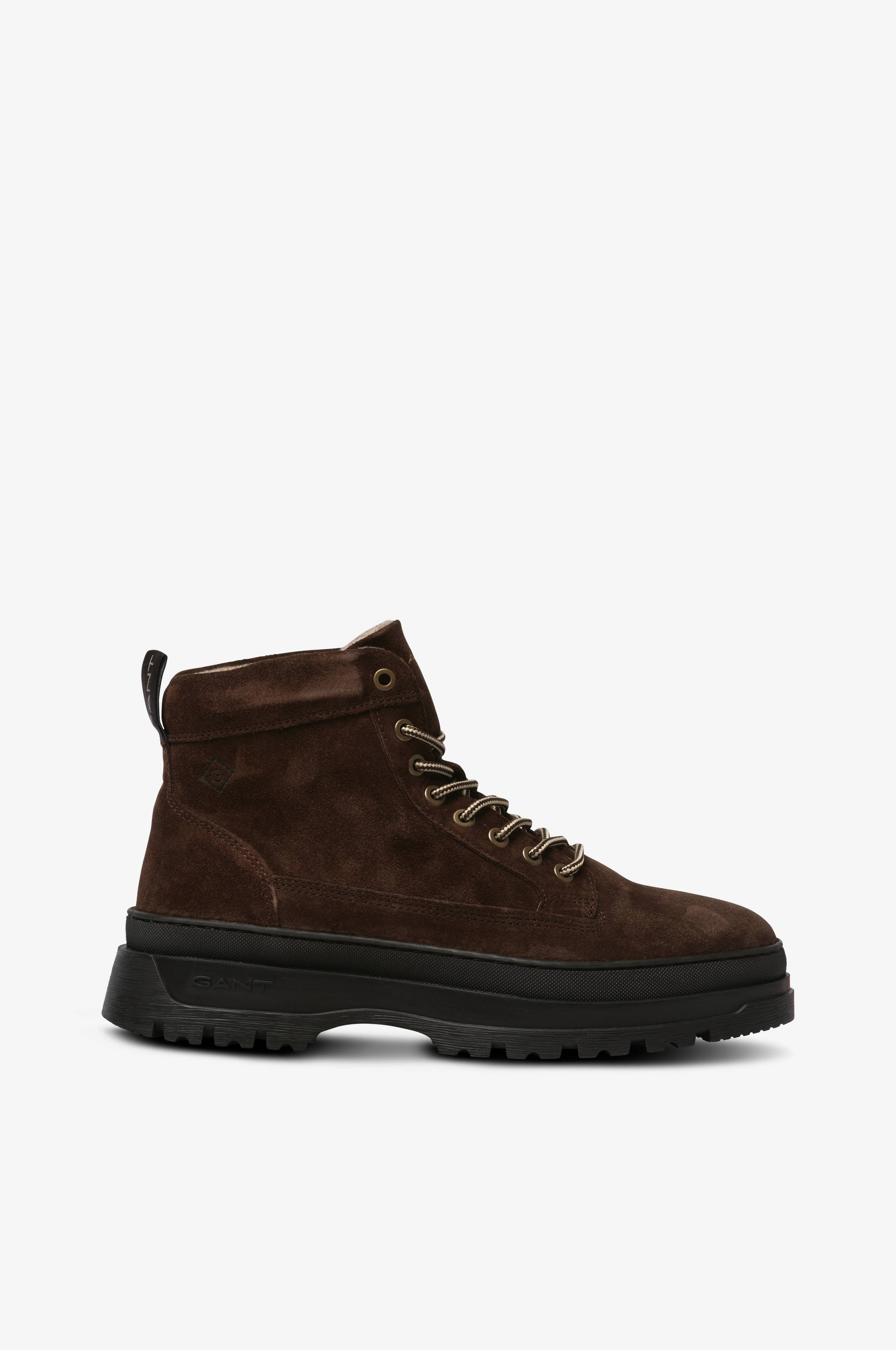 • Modell i semsket skinn• Varm foring i ull• Snøring foran• Høy lukking• Sklisikker yttersåle