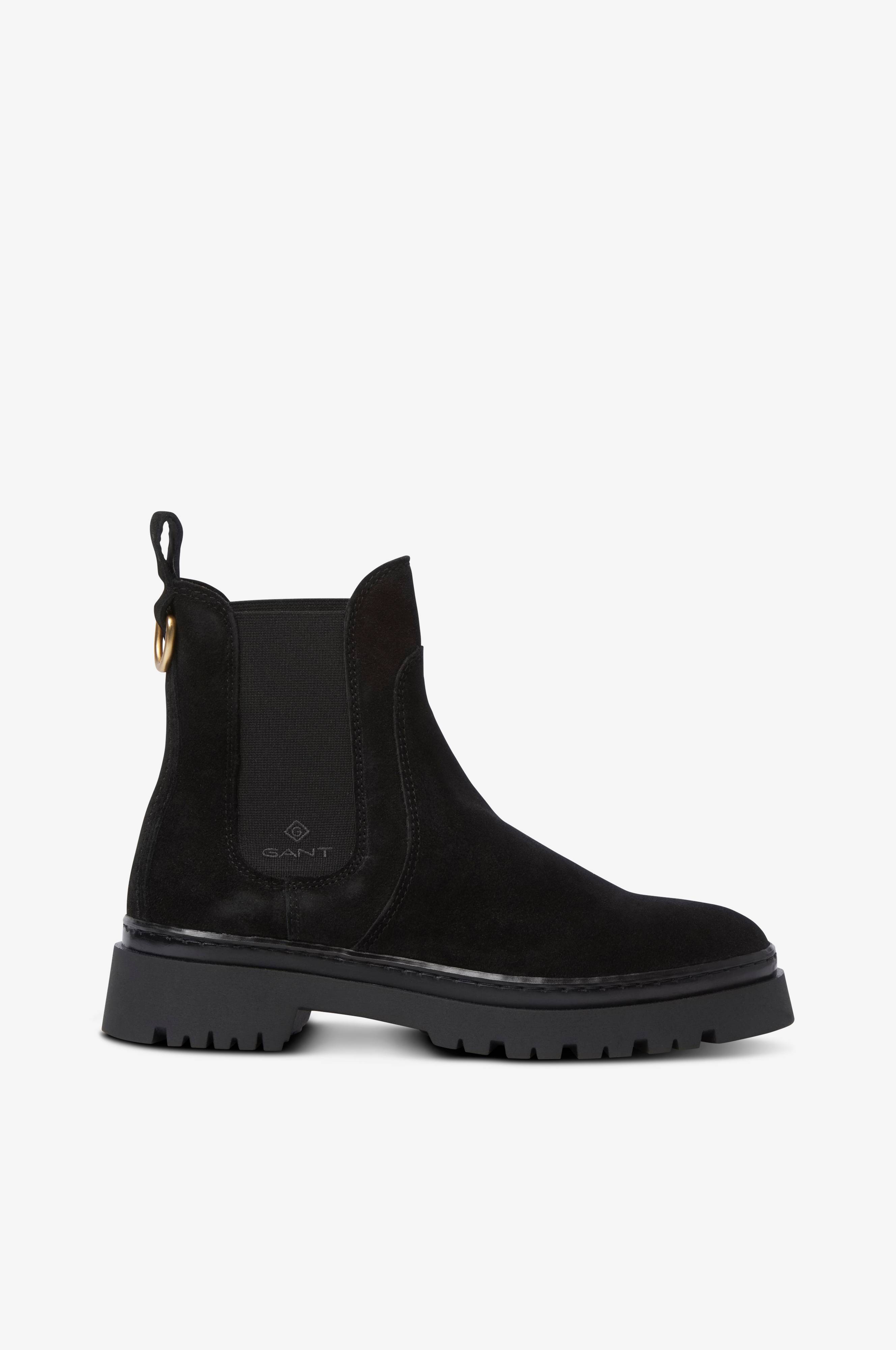 • Øvre del i semsket skinn• Elastiske paneler på begge sider av skaftet• Trekksnor bakpå med detalj i metall• Foring i skinn og tekstil• Yttersåle i gummi• Hælhøyde: 3,5 cm• Skafthøyde: 14 cm i størrelse 37