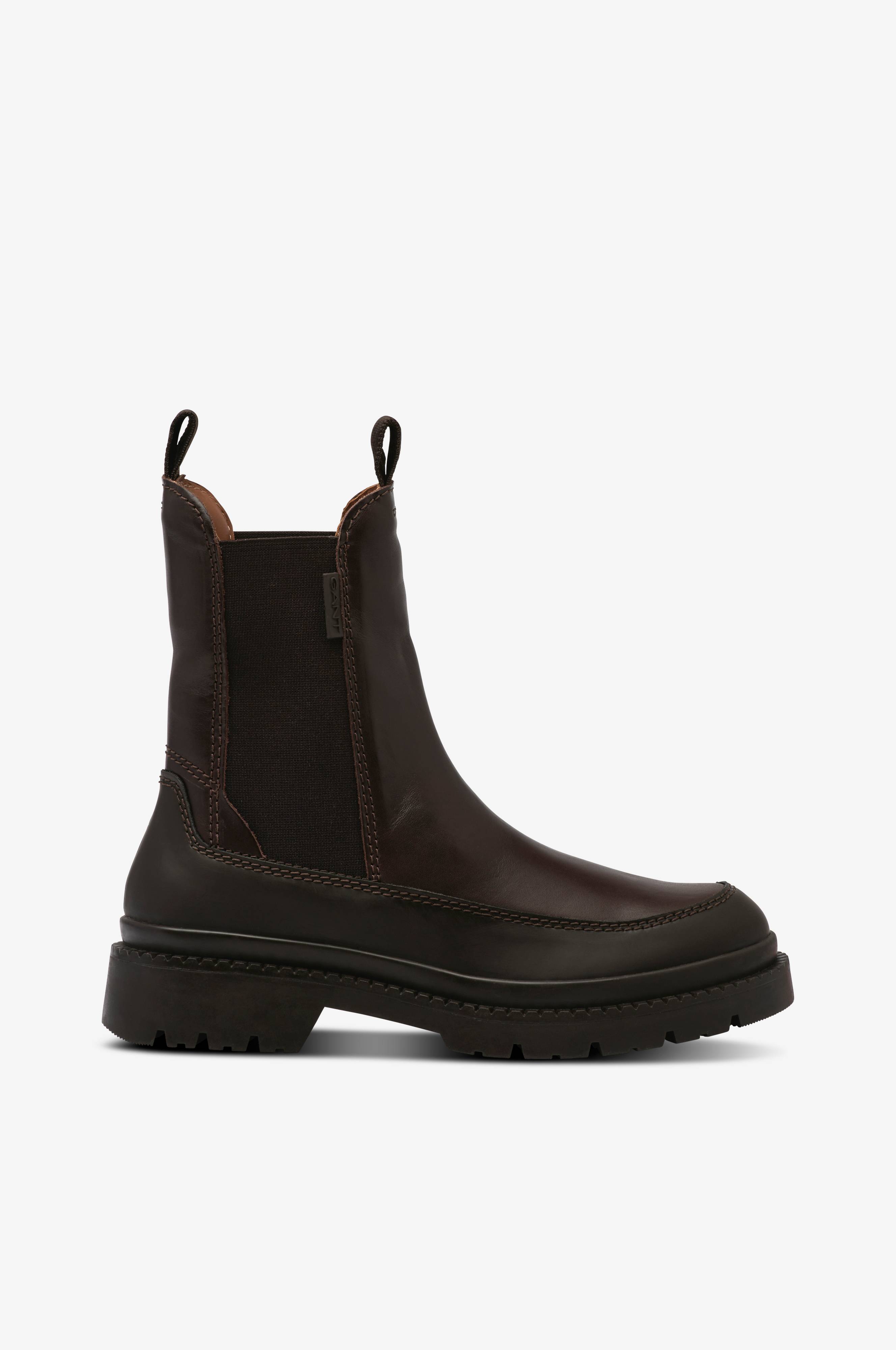 • Chelseaboots i skinn• Elastiske paneler på begge sider av skaftet• To vevde drafliker på skaftet• Tekstilfôr• Yttersåle i gummi• Skafthøyde: 17 cm i størrelse 37• Hælhøyde: 3 cm