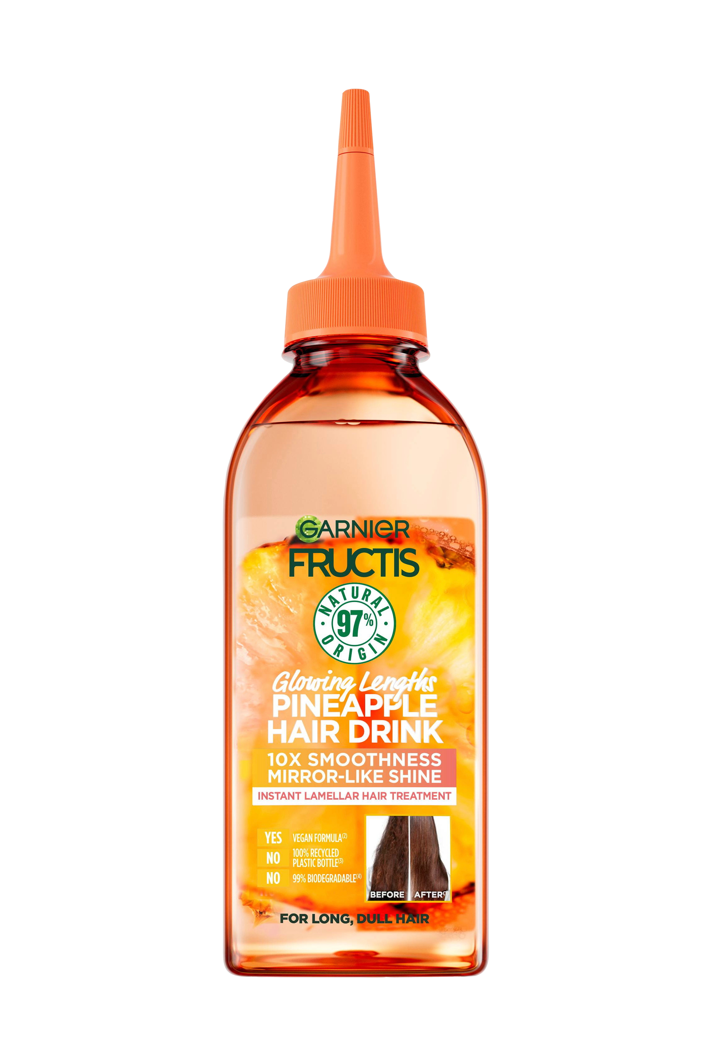 Er du klar for en rask hårforvandling? Har du alltid drømt om skinnende blankt hår? På bare 10 sekunder forvandler Garnier Fructis Pineapple Hair Drink håret slik at det blir glatt og skinnende uten å føles tungt.