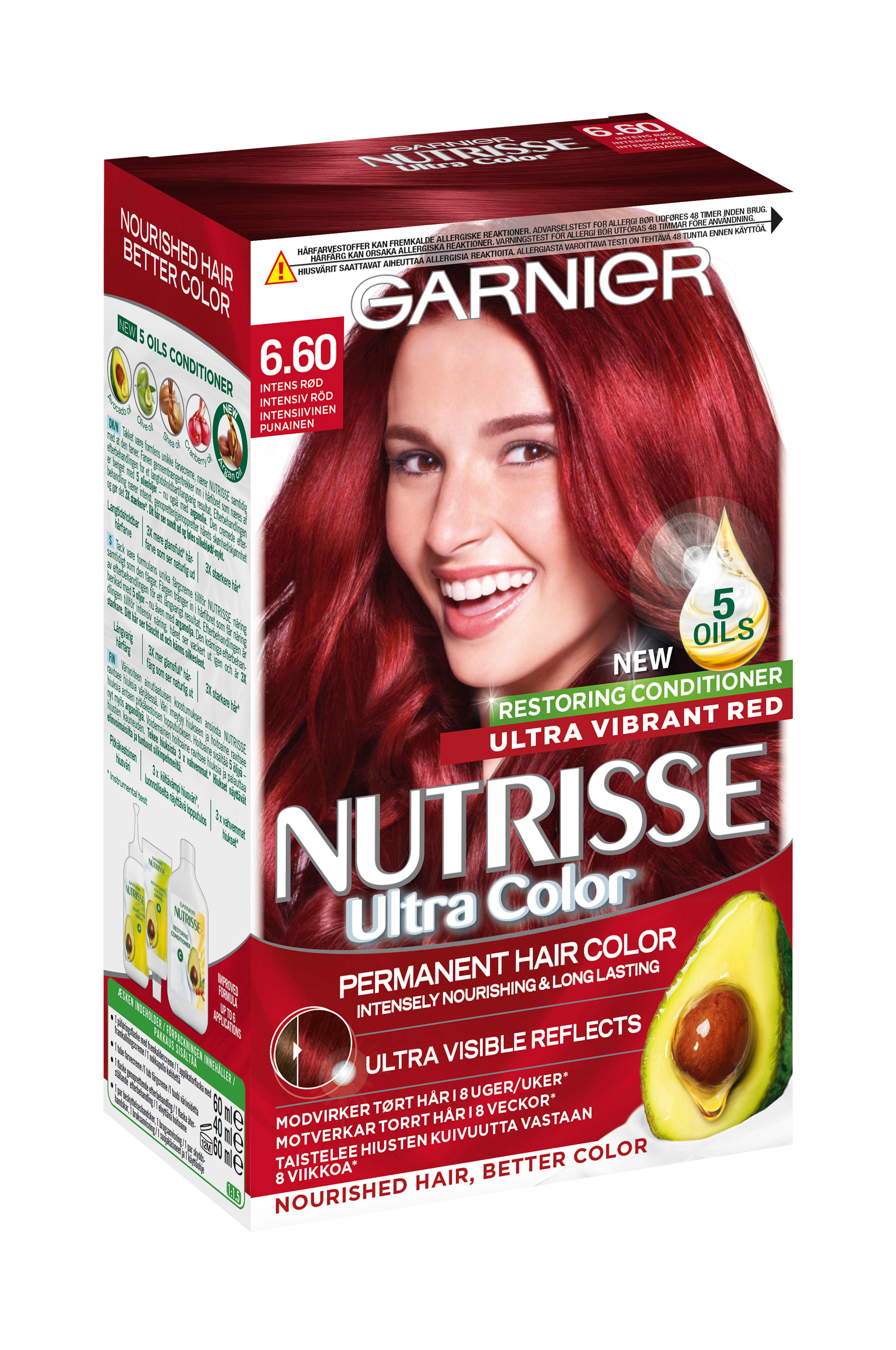Nutrisse Cream er en permanent hårfarge som er beriket med fruktoljer. Nutrisse er den første hårfargen som gir næring til håret samtidig som det farges. Den pleiende etterbehandlingen med avokado gjør håret mykt og smidig. Hårfarging kan forårsake alvorlige allergiske reaksjoner. Les og følg bruksanvisningen. Produktet er ikke beregnet til bruk på barn under 16 år.