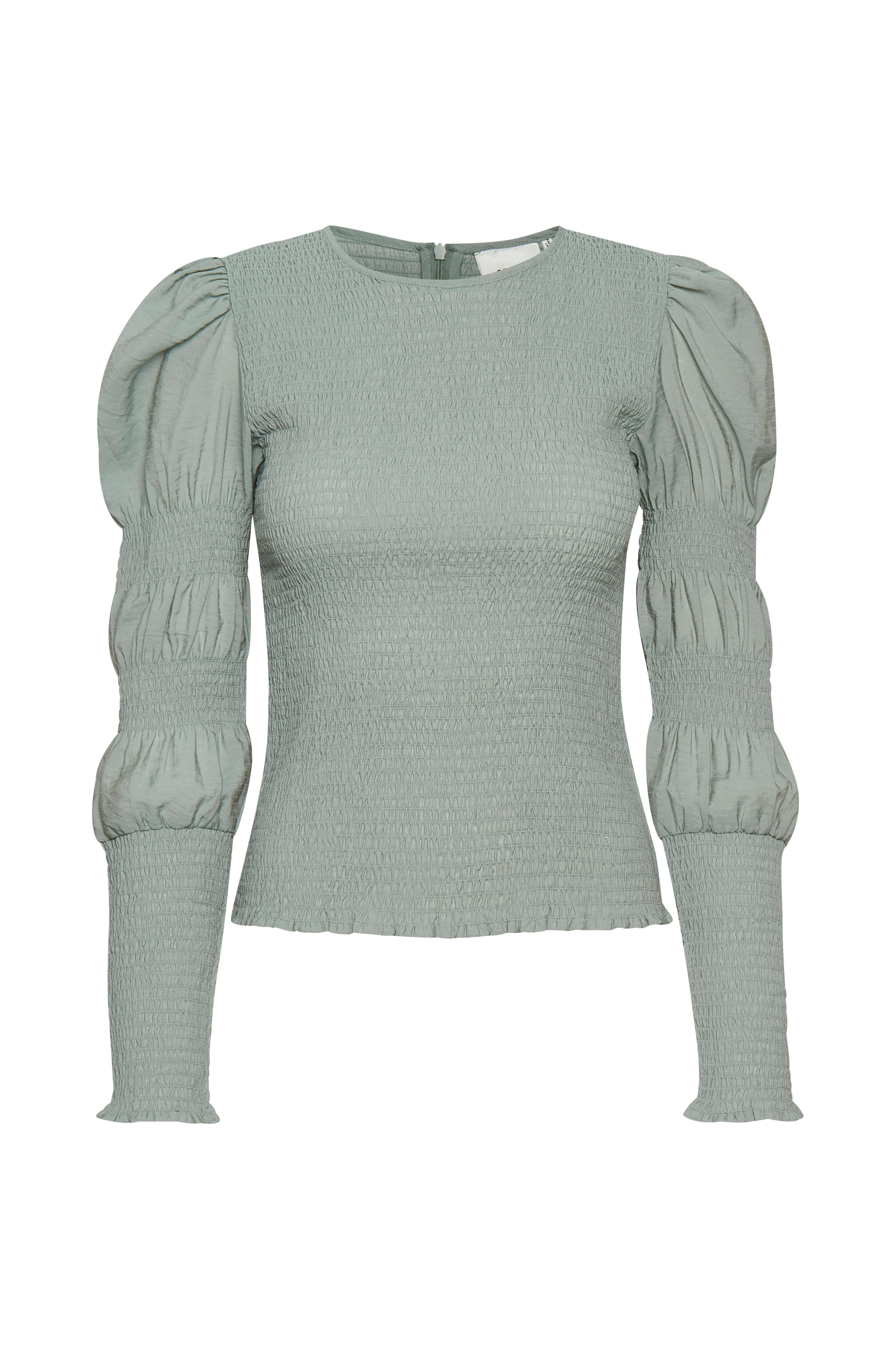 Bluse i smal modell i vaffelsøm som gir deilig stretch. Lange puffermer med partier i vaffelsøm. Rund hals og skjult glidelås i ryggen.