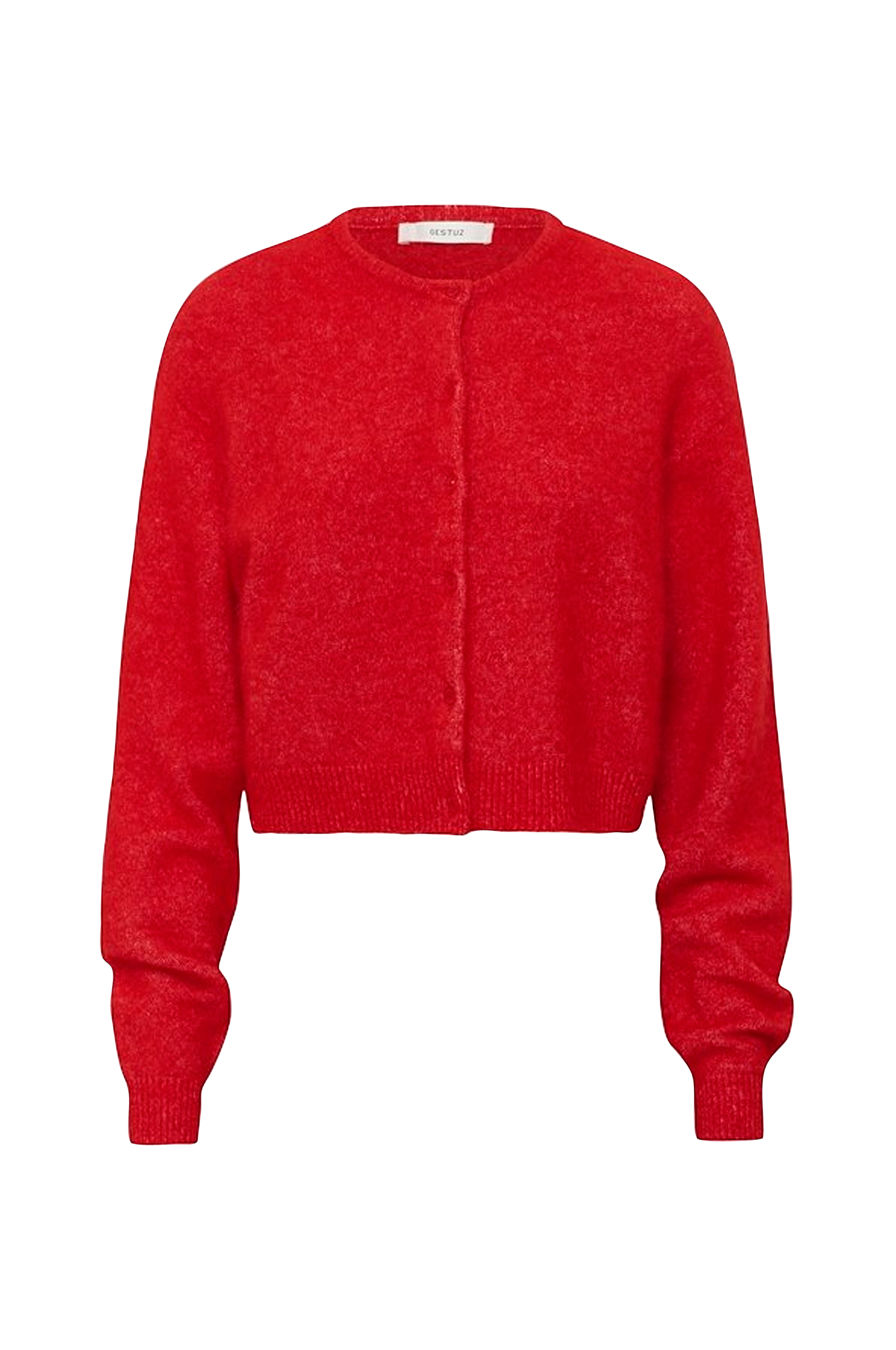 • Myk, strikket kardigan i mohairblanding• Kort modell med lange ermer• Rund hals• Lukking foran• Ribbestrikk i ermeslutten og i nedre kant